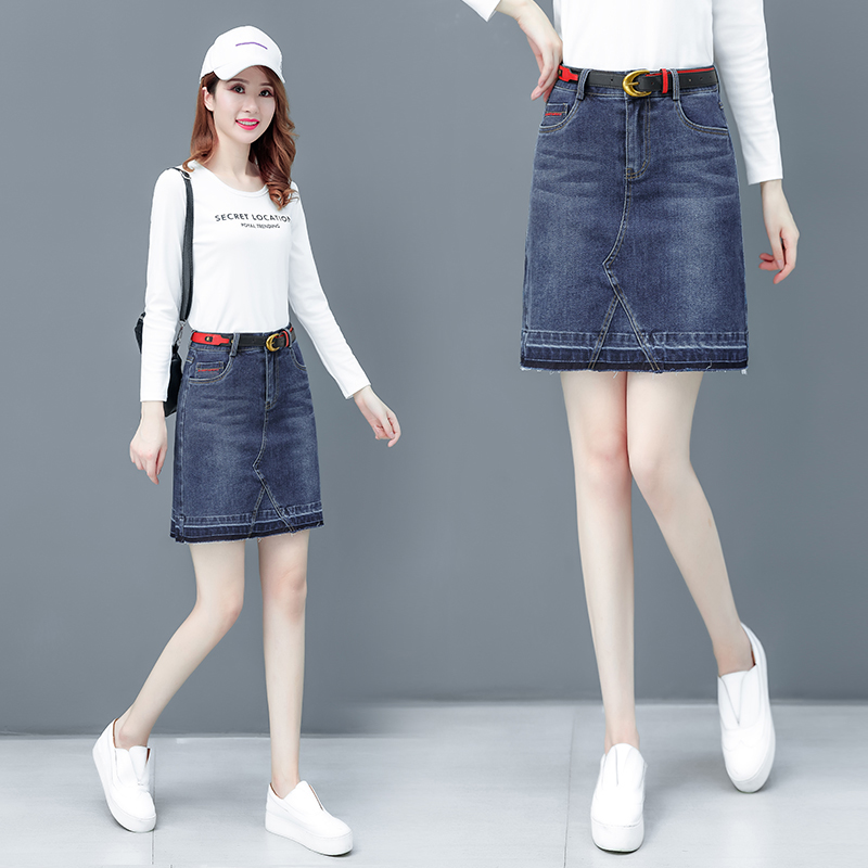 High-waisted denim skirt girl Chunqiu 2021 new Korean version of the skirt in the long version of the bag hip A-word skirt is thin