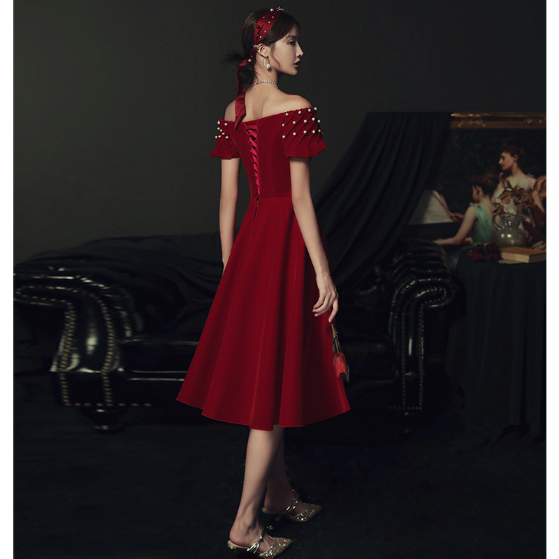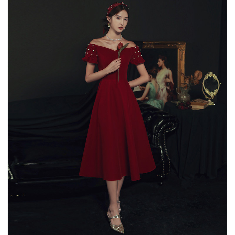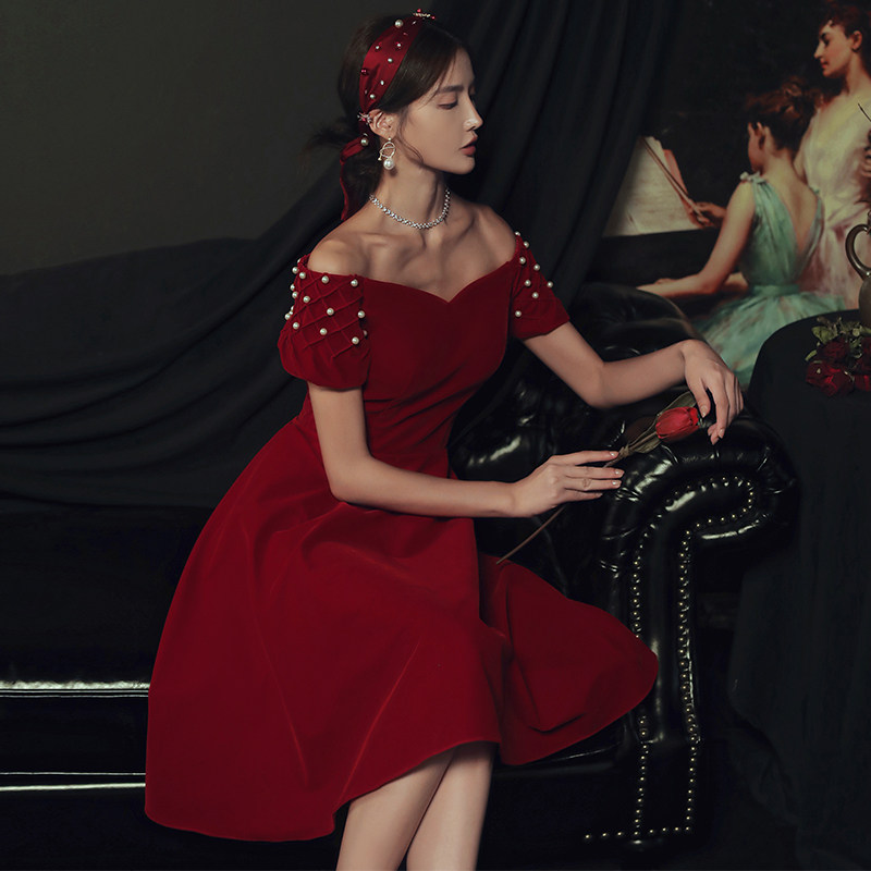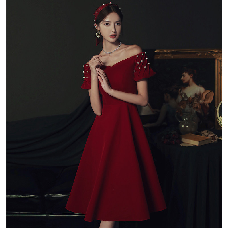 Straight Shoulder Toast Bridal 2022 New Temperament Wine Red Wedding Small Gown Dress Normally Can Wear Atmospheric Lady