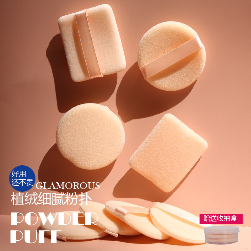 Small Flocking Round Dry Powder Puff Makeup Honey Loose Powder Puff (7 Pack) Square Setting Powder Puff Box