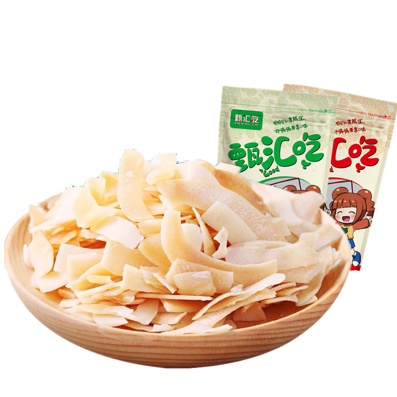 Hainan specialty fragrant roasted coconut flakes, crispy chunks, dried coconut meat, horned meat, coconut dried coconut flakes, casual non-sugar-free snacks