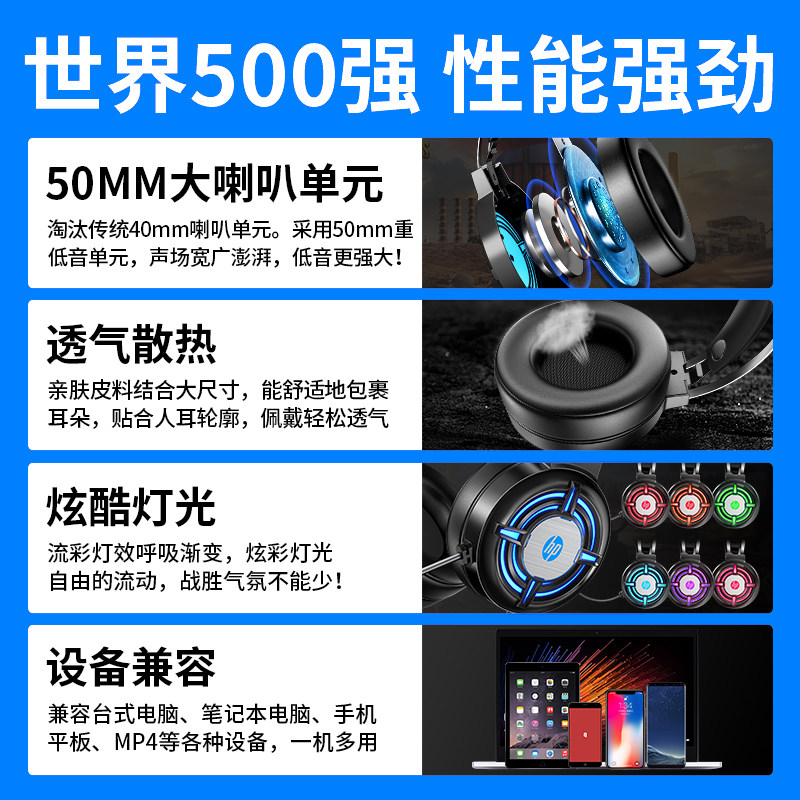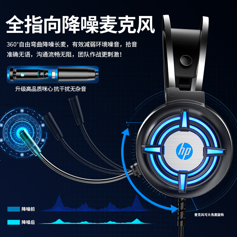 HP Computer Headset Headsets Electric Race Games Eat Chicken Desktop Laptop USB cable with microphone