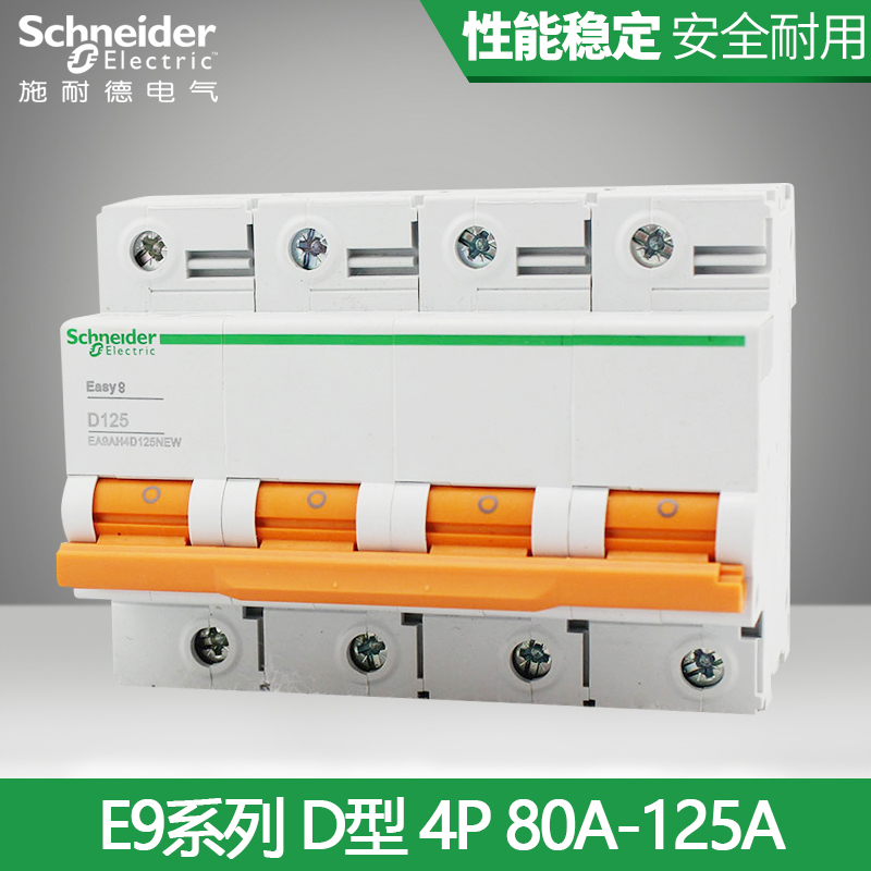Schneider E9 breaker air switch D type Easy9 large current empty open 4P80A 100A 125A