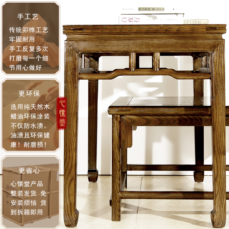Ming-style desk Painting case Zen desk Solid wood antique ash wood calligraphy table Zen chair combination writing desk Tea table
