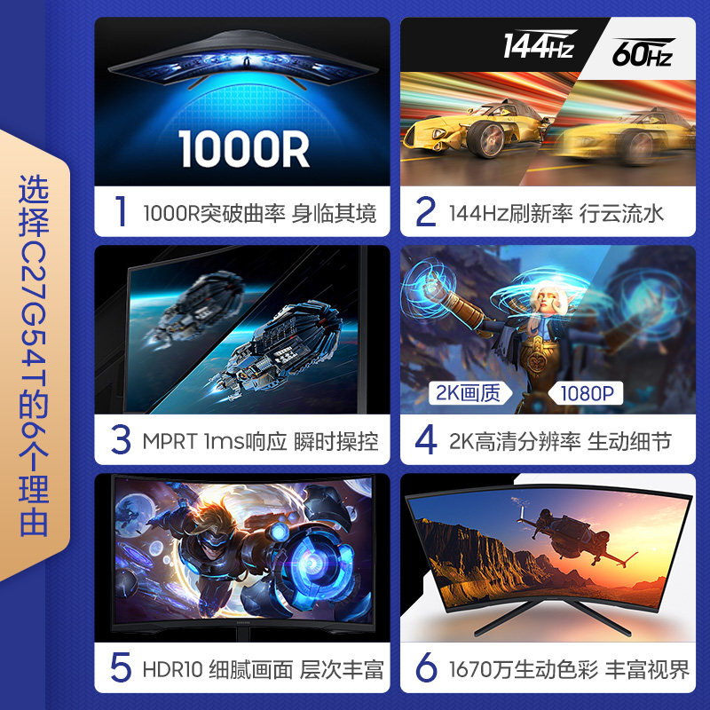 27 inch - Dragon Rider G5-C27G54TQWC 31.5 inch - Dragon Knight G5-C32G55TQWC 27 inch -1080P-144Hz - Flat - F27G33TFWC 27 inch -1080P-144Hz-1ms Response - Lift rotation plane - S27AG300NC 27 inch - 1080P-60Hz -C27R508FHC