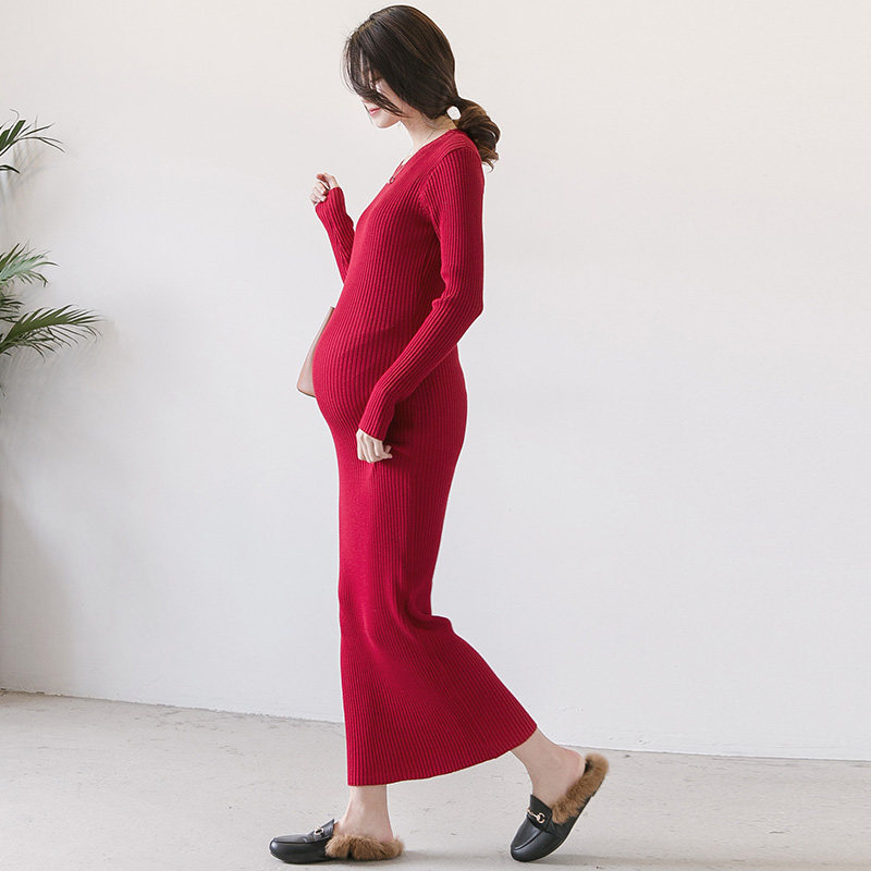 Pregnant women's knitted dress autumn slim long sweater dress maternity wear autumn and winter dress fashion Western autumn and winter dress