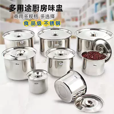 Thickened stainless steel seasoning tank seasoning jar round with lid taste Cup kitchen oil tank chili tank chili tank seasoning tank commercial