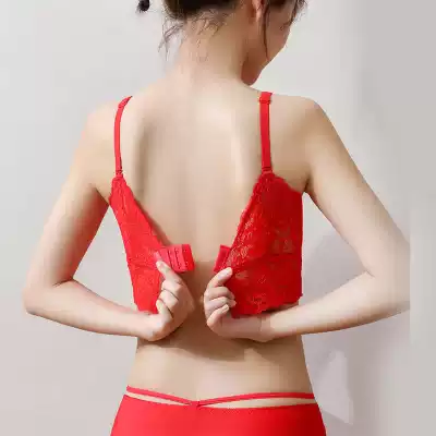 Beautiful back bra sling bra one-piece thickened small chest gathered latex underwear lace vest net red explosion