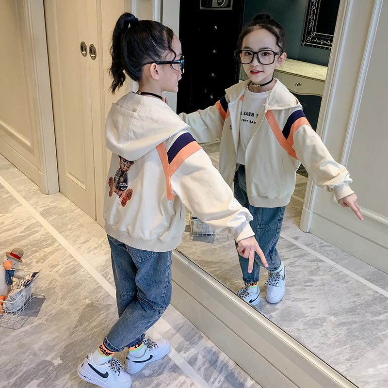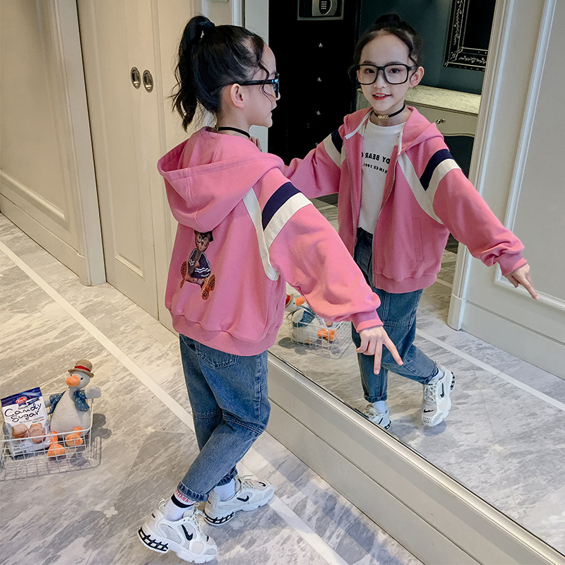 Girls spring and autumn sweater jacket 2022 new net red foreign style Korean version children's autumn big girl Korean fan tide clothes