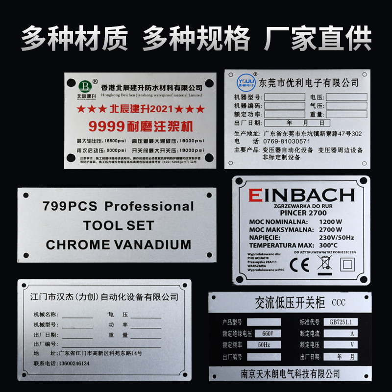 Stainless steel sign high-gloss stamped aluminum brand UV screen printing corrosion nameplate other process customization
