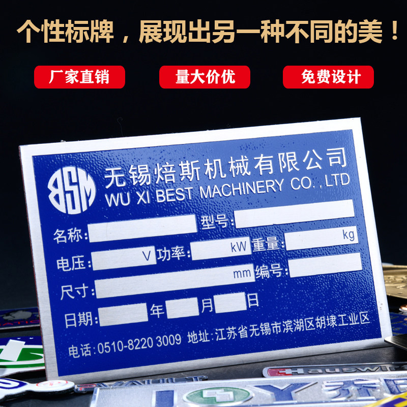 Nameplate custom sign custom product stainless steel aluminum brand automobile vehicle mold mechanical laser screen printing corrosion metal logo brand equipment furniture doors and windows to make electroplated alumina alloy