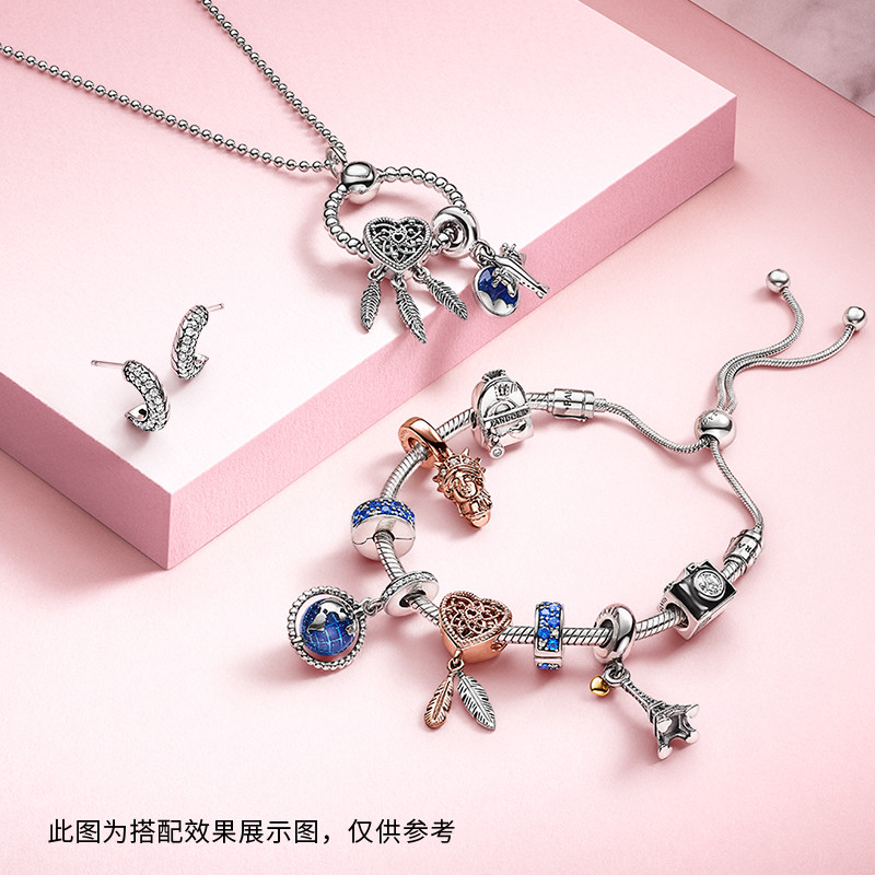 Pandora 925 Silver Pandora Moments decorated beaded O-shaped pendant medium 399106C00 romantic gift