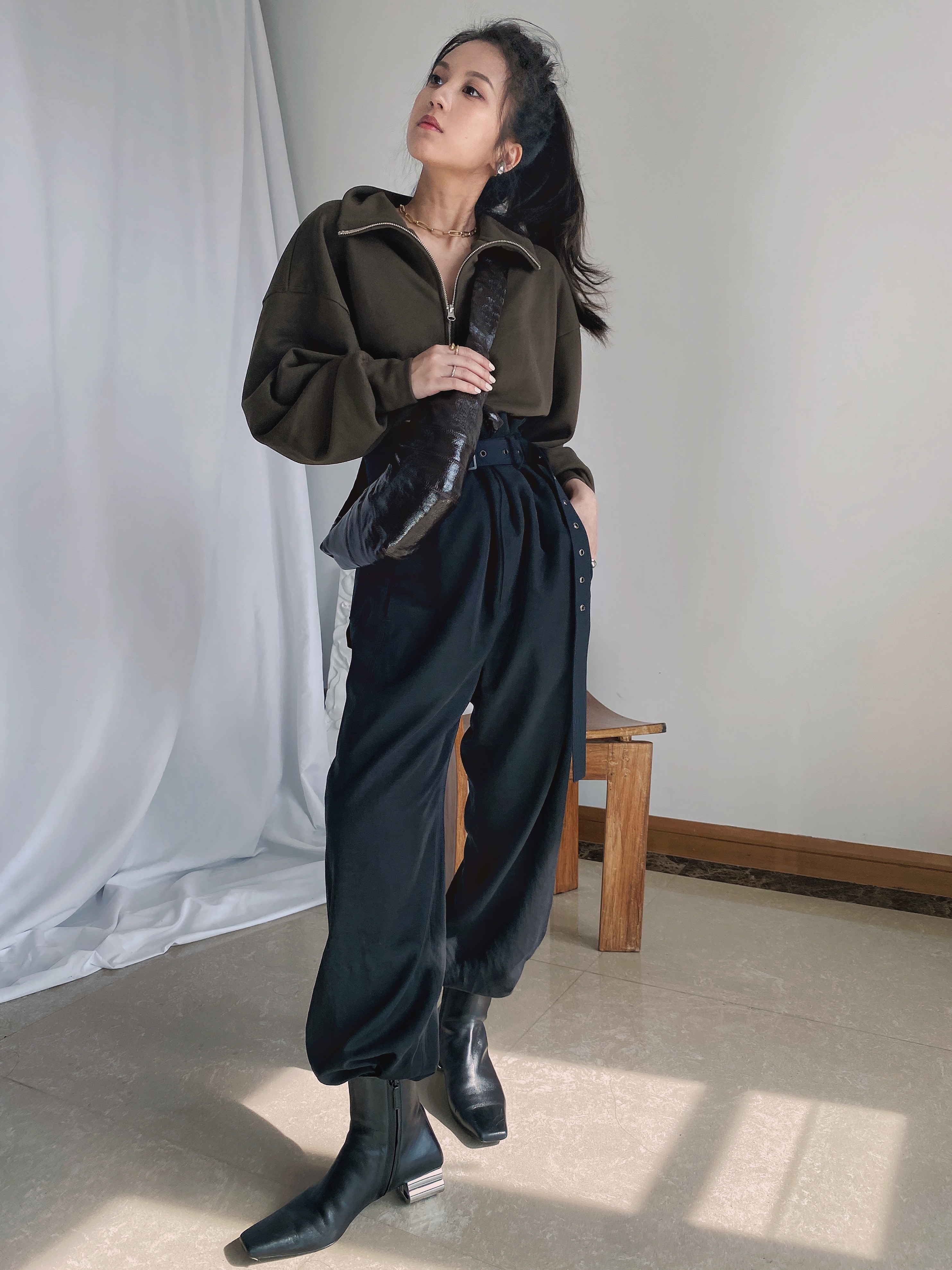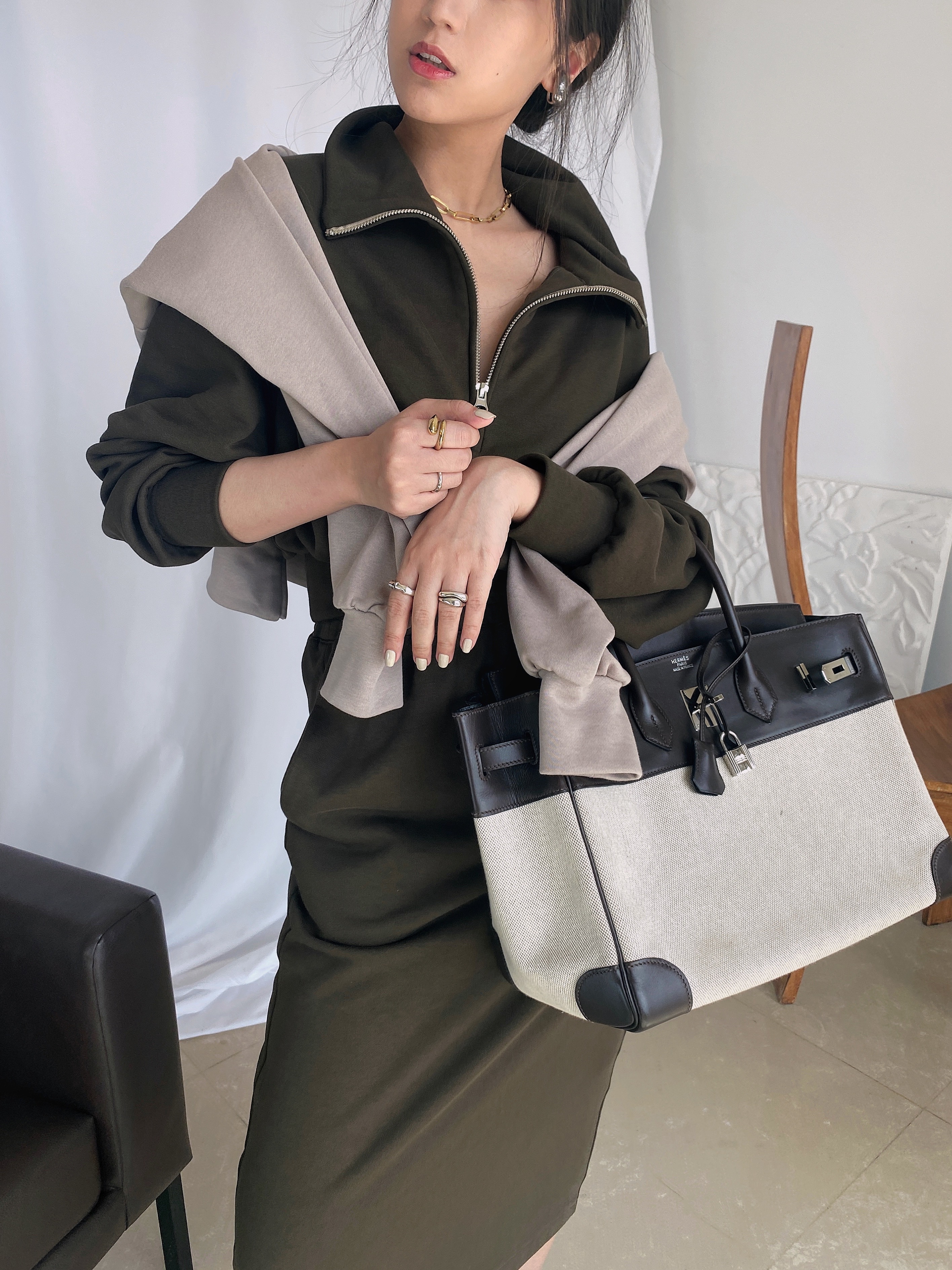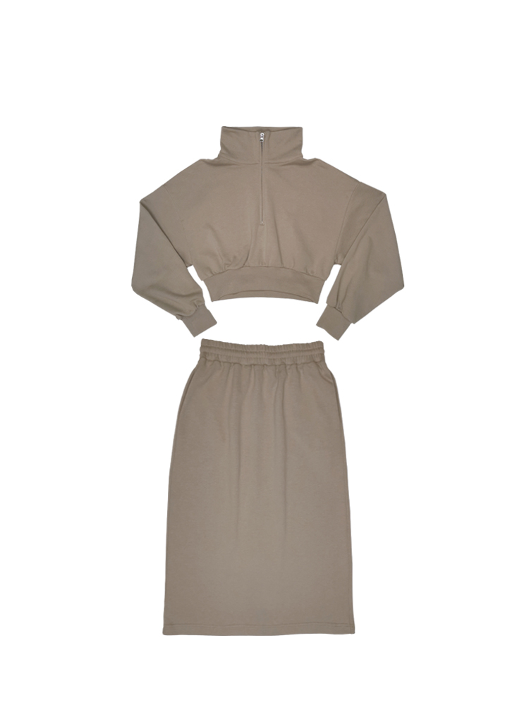 Knitted short sweater-Olive Knitted elastic waist skirt-Olive knitted short sweater-Dark beige Knitted elastic waist skirt-Dark beige