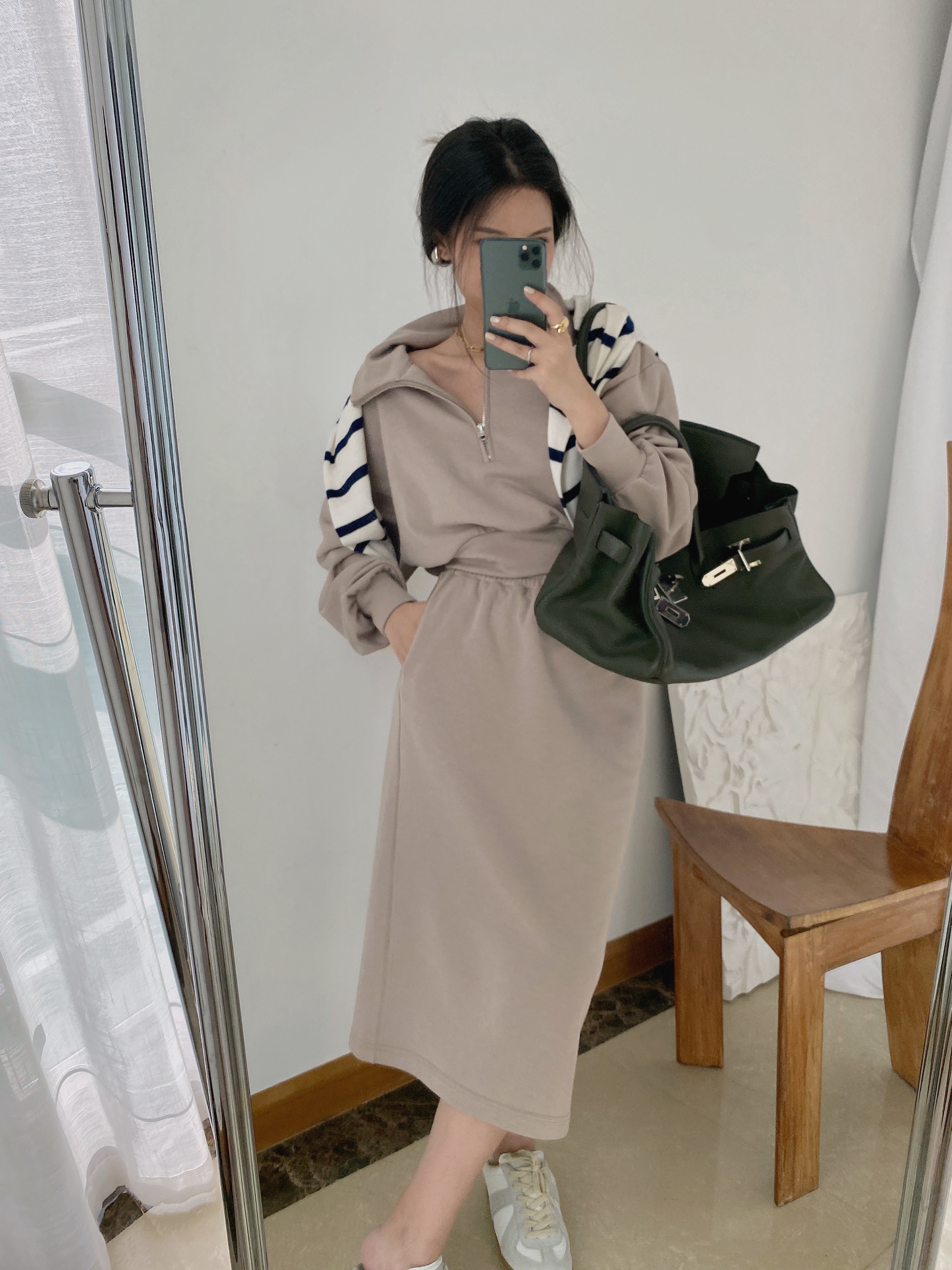 taupe store fashionable thin pear-shaped bi in and out of the shoulder loose ultra-short pullover casual top guard skirt suit