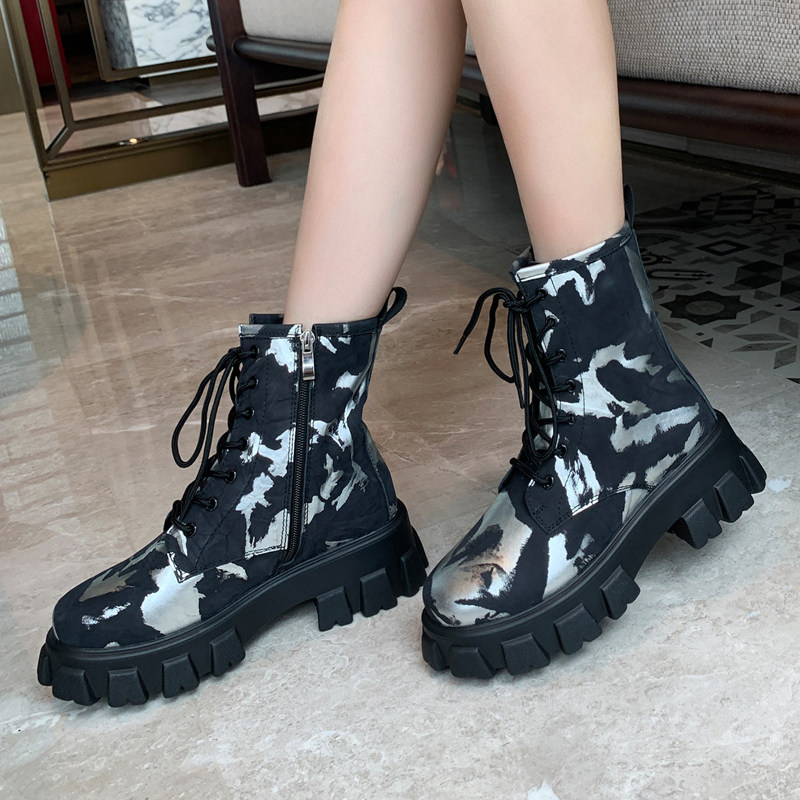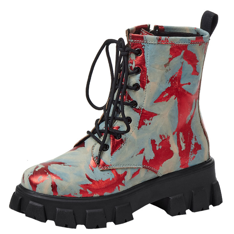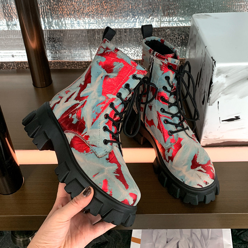 Autumn Winter Martin Boots Female Tide Personality Ingléal Wind Tennis Red Color High Cylinder Boots Short Boots Woman Thick Bottom Front Lace Genuine Leather Boots