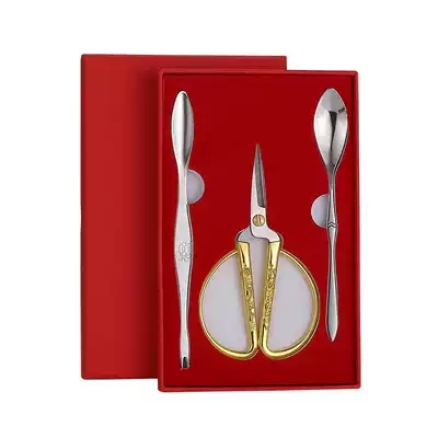 Wooden box plastic handle eight-piece dragon and phoenix scissors Golden dragon crab eight-piece wooden box stainless steel crab eight-piece high-end crab three-piece simple stainless steel three-piece pliers two-piece gift box new crab two-piece standard three-piece storage box