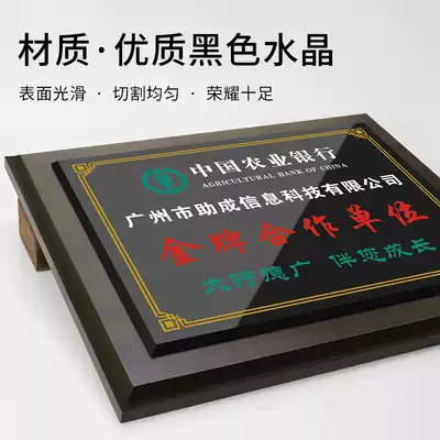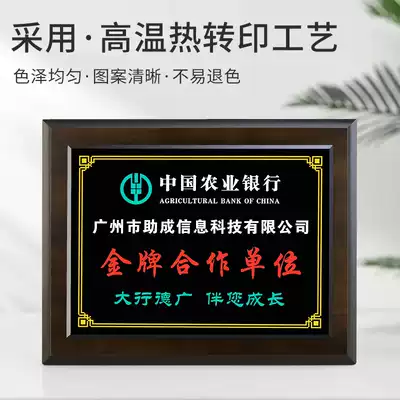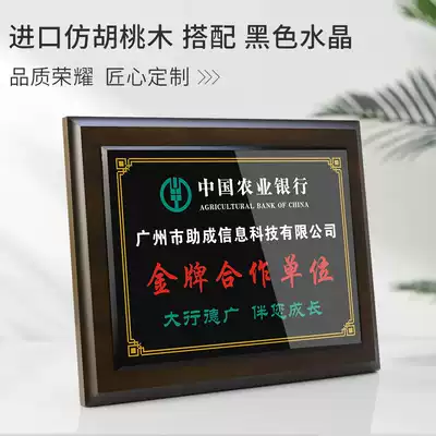 (Bank gold medal cooperative unit)Crystal glass solid wood medal award custom certificate of honor Wooden trust plaque