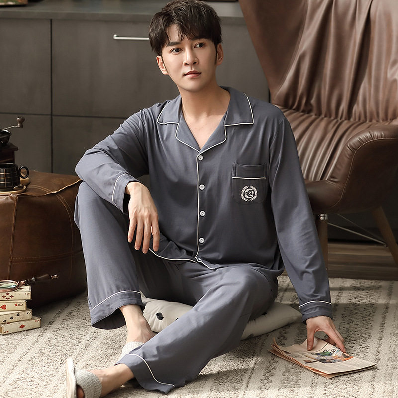 Pajamas men spring fall long sleeve Model fattened plus large sweaters loose and outfitted two pieces of home suit