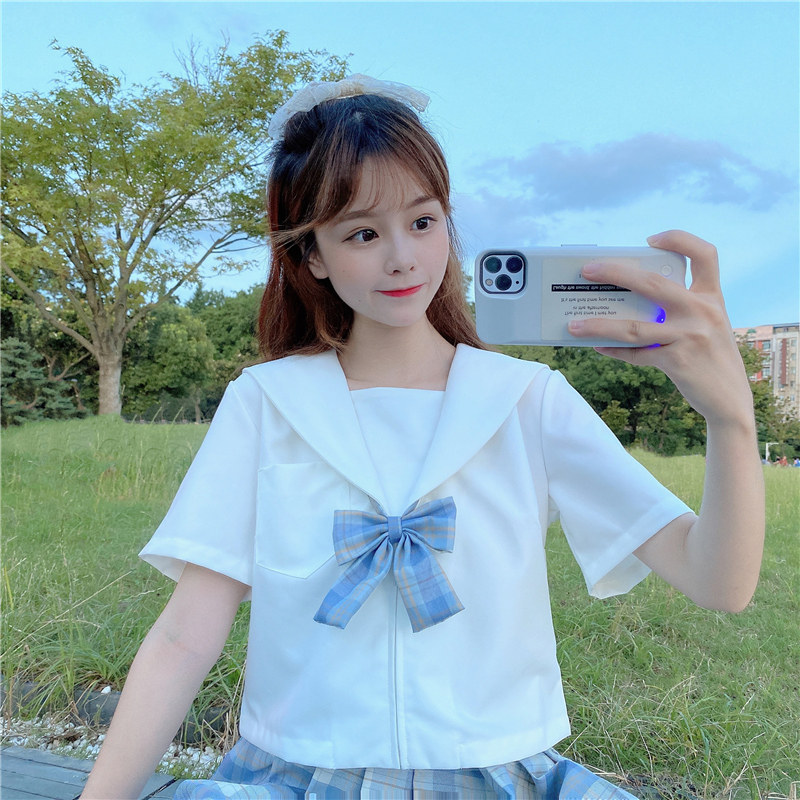 5055 (close eastern flap button short shirt) 5055 (Kansai laced short shirt) 5055 (pink plaid skirt bow tie) 5055 (blue plaid skirt bow tie)