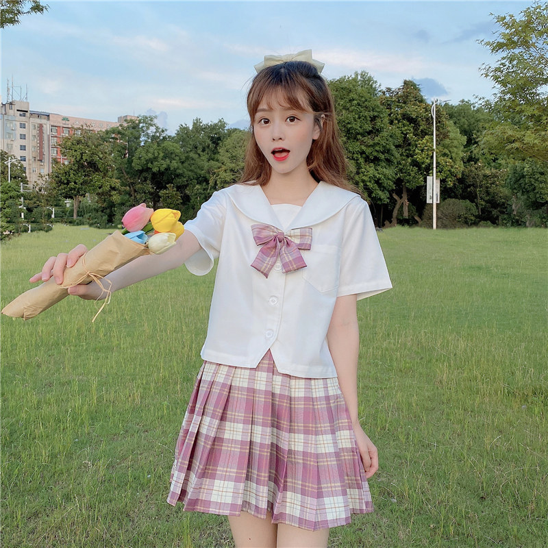 jk uniform dress, a full set of closing cardiovert shirts women sweet and pink little fresh high school gagey dress suit