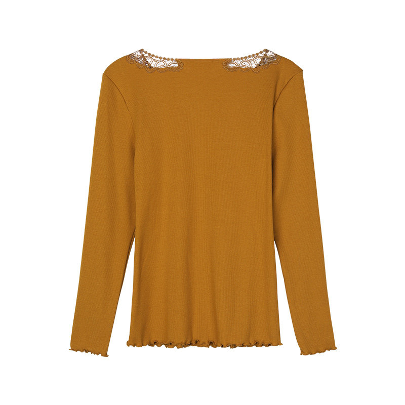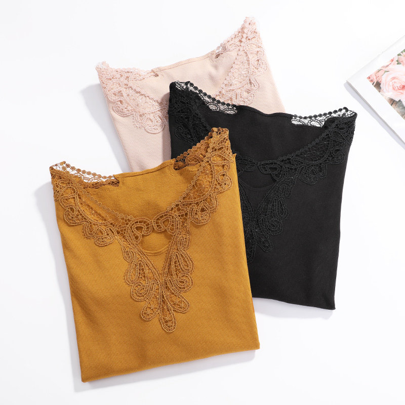 Anolifang Autumn Winter Lace Embroidery Small V Neckline Sweaters Undershirt Lady Knit Rou Textured Warm Coat ED00169