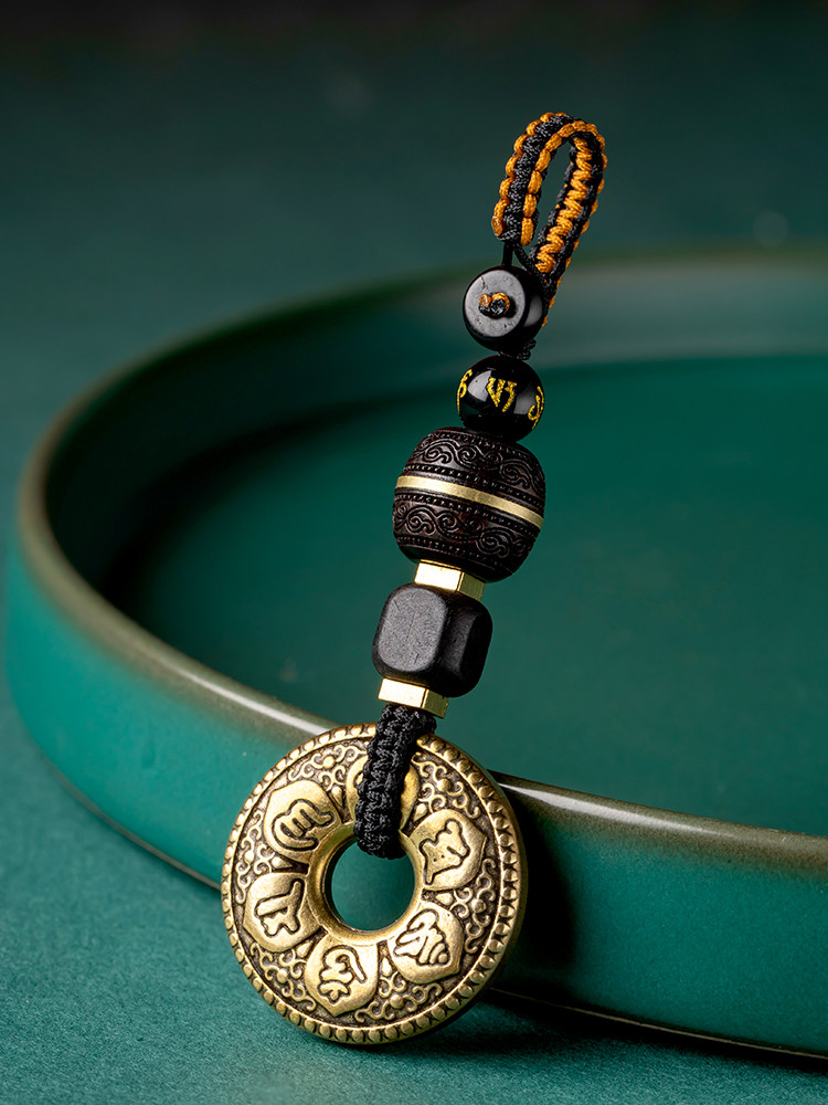 Bambe fun car keychain pendant personality creative high-end men and women pure brass safe pendant six-character mantra
