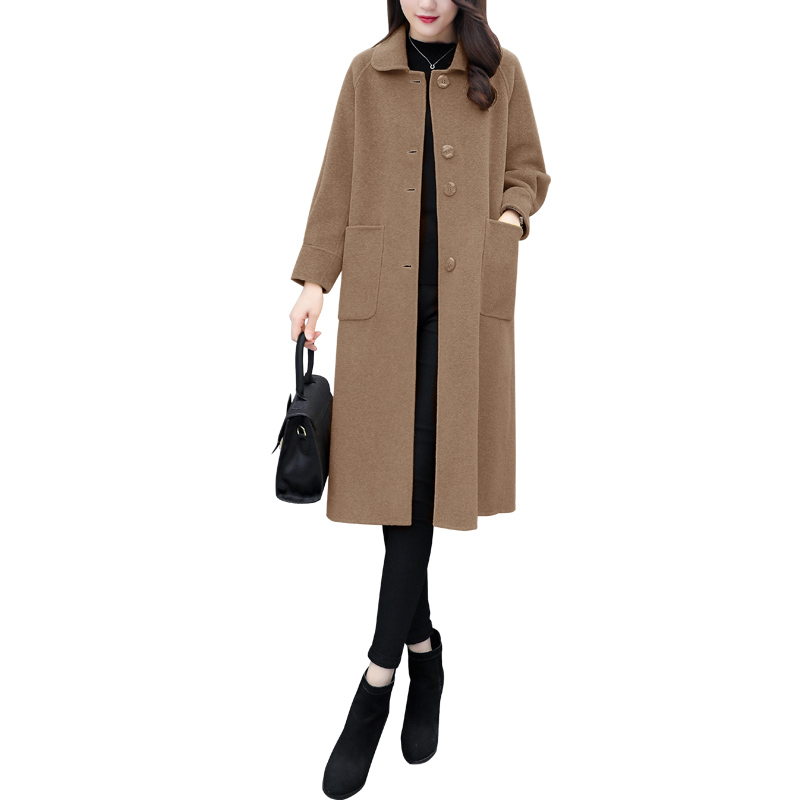 The long version of the great coat of clothes 2022 Korean version of the autumn and winter dolls collar Mao, and the female overcoat with a loose knee and a thin coat of clothing