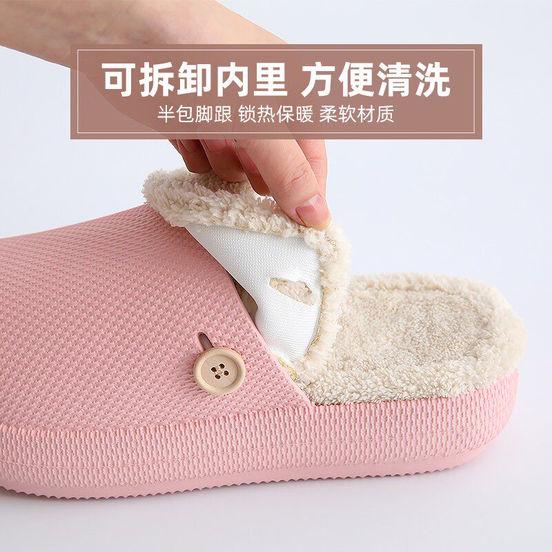 Waterproof cotton slippers men and women plus velvet rubber and plastic one thick substrate can be removed and detachable separated autumn and winter home wear