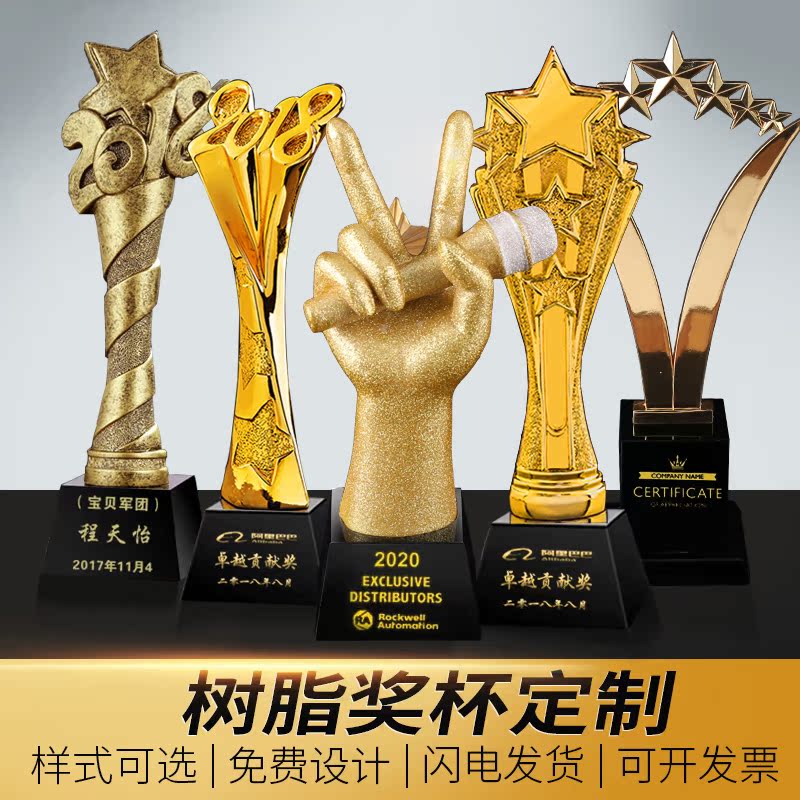 Resin Trophies Custom Gold And Silver Metal Creative Trophies for Corporate Honor Recognition Event Trophy Booking