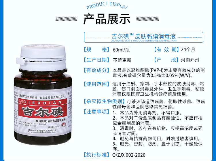 Jill iodine skin and mucous membrane disinfectant 60ml bottle wound disinfection alcohol-free burn gynecological umbilical cord disinfection