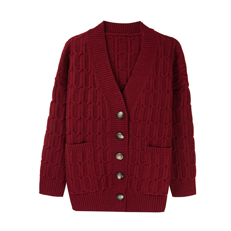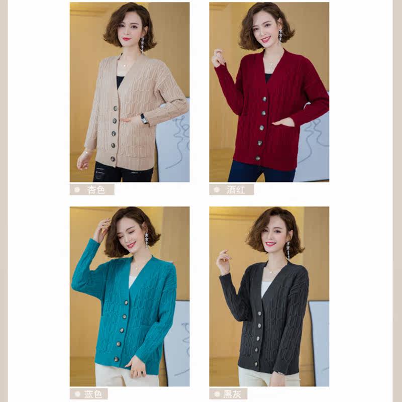 Hengyuanxiang autumn knitted cardigan jacket female mother plus fat plus size loose and thin lazy style sweater