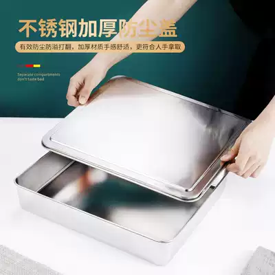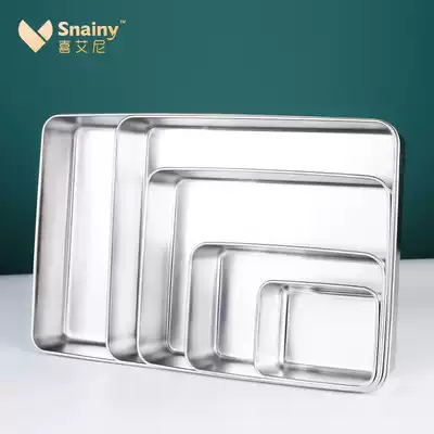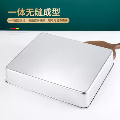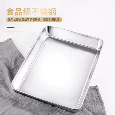 Stainless steel rectangular plate Kitchen preparation plate Household with lid box steamed cake plate Baking baking plate flat square plate