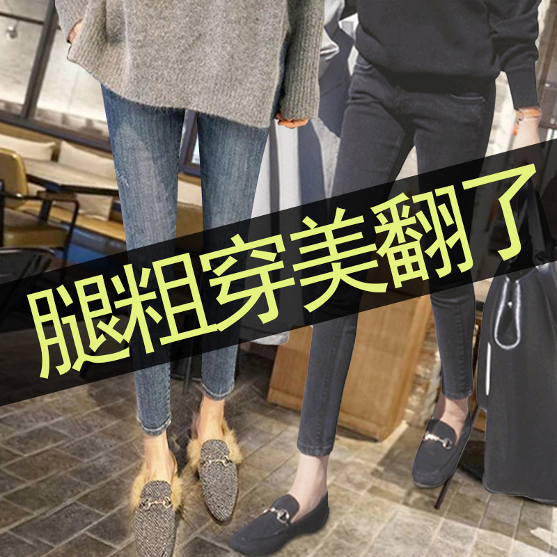 2020 new large size jeans women pants high waist thin fat mm small feet nine points pants fat sister autumn tight