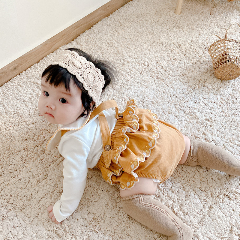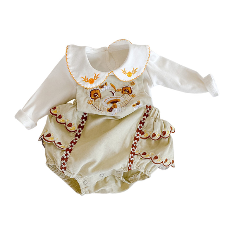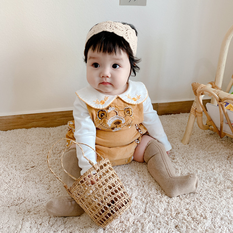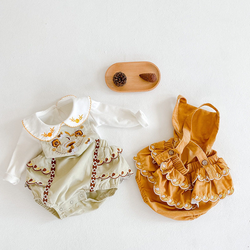 Ins2021 spring Korean version baby retro style embroidery straps one-piece baby big PP triangle climbing suit