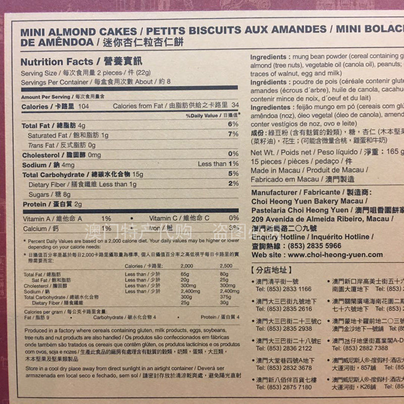 Macau TeXX_ENCODE_CASE_CAPS_LOCK_Off-Produced Aroma Garden Hand Letter Carbon Burning Mini Almond Cake 165g Shunfeng