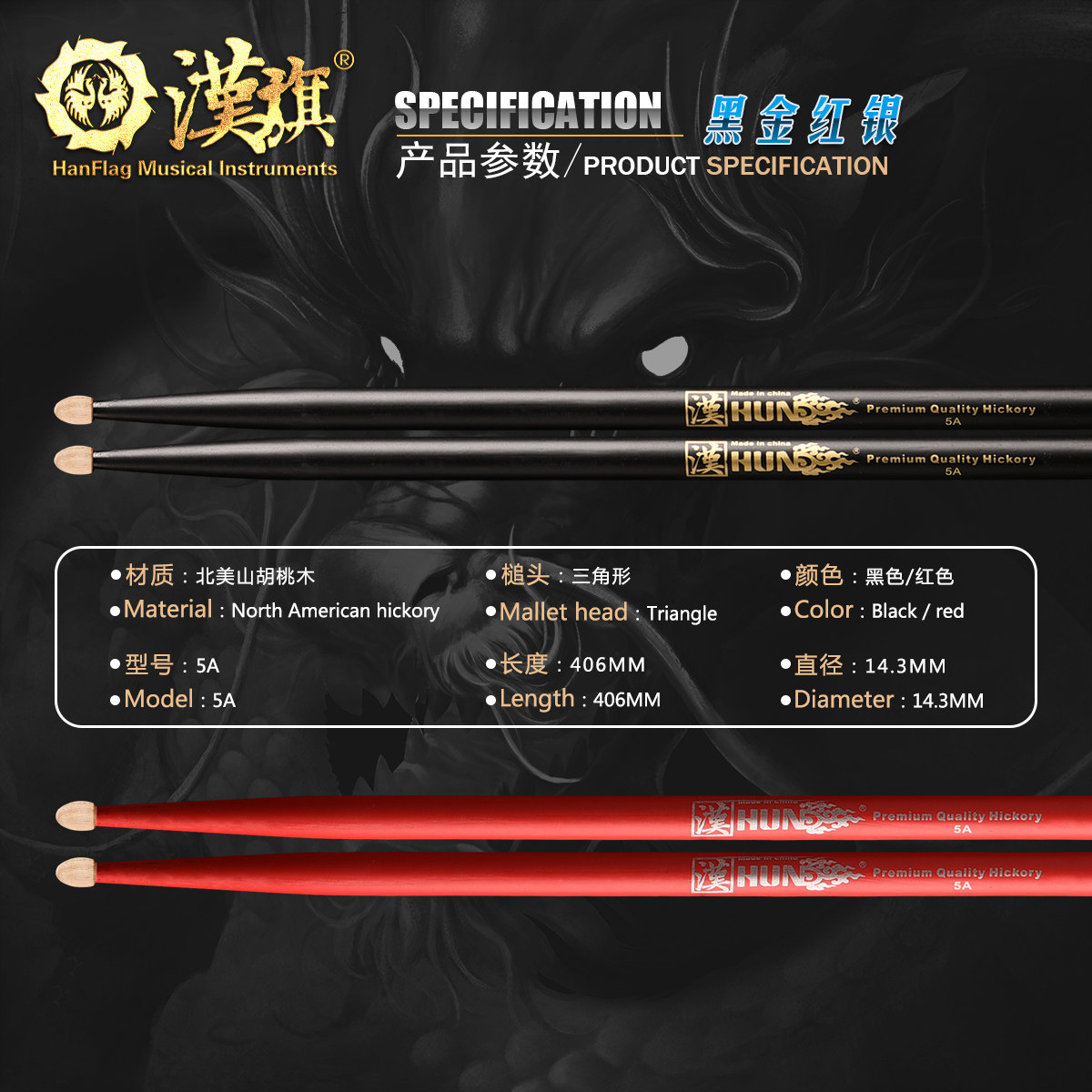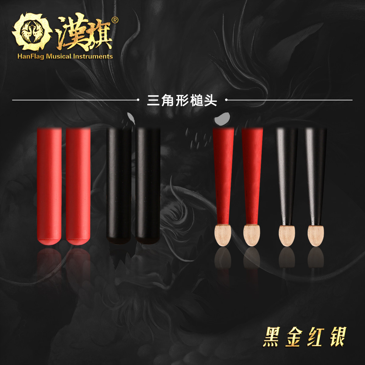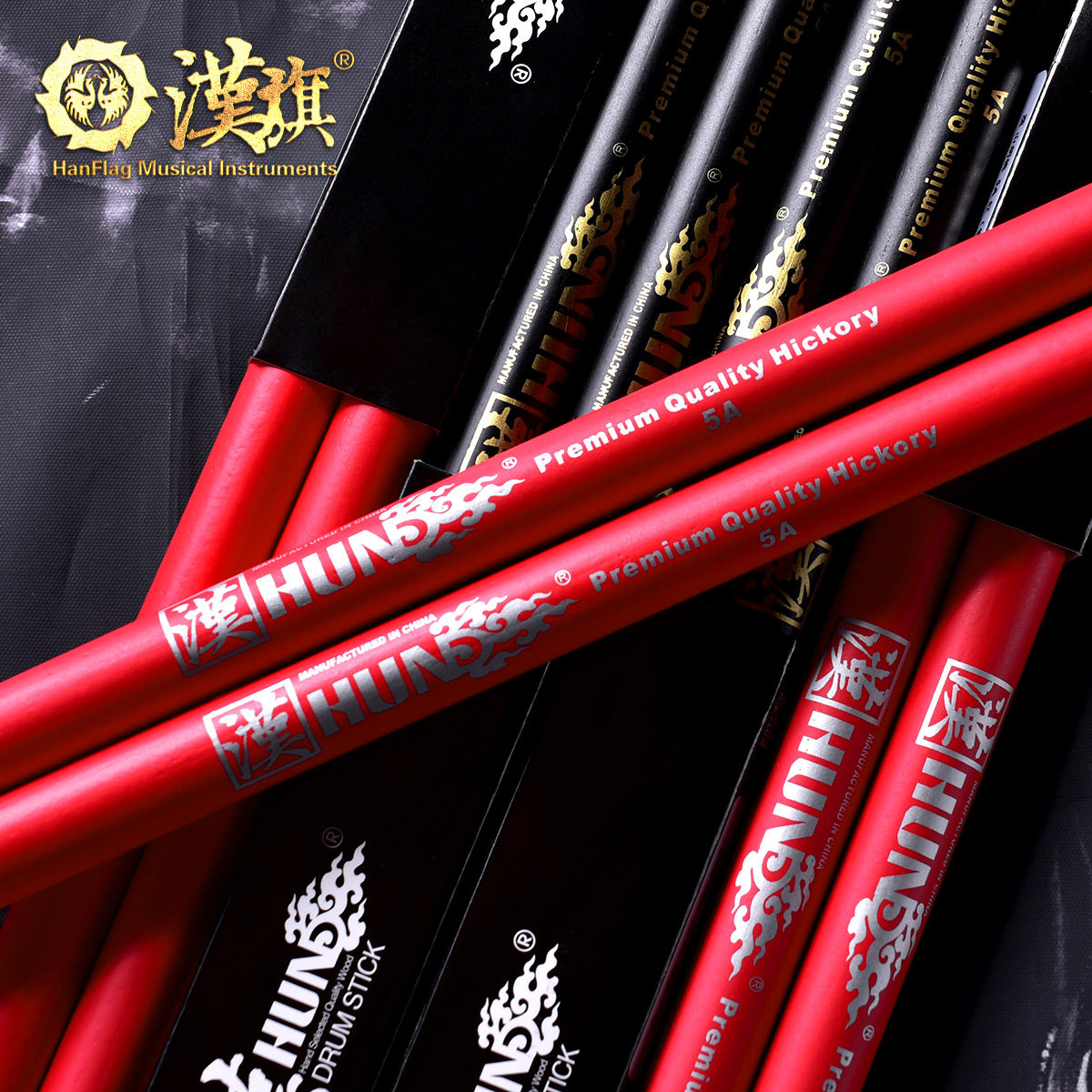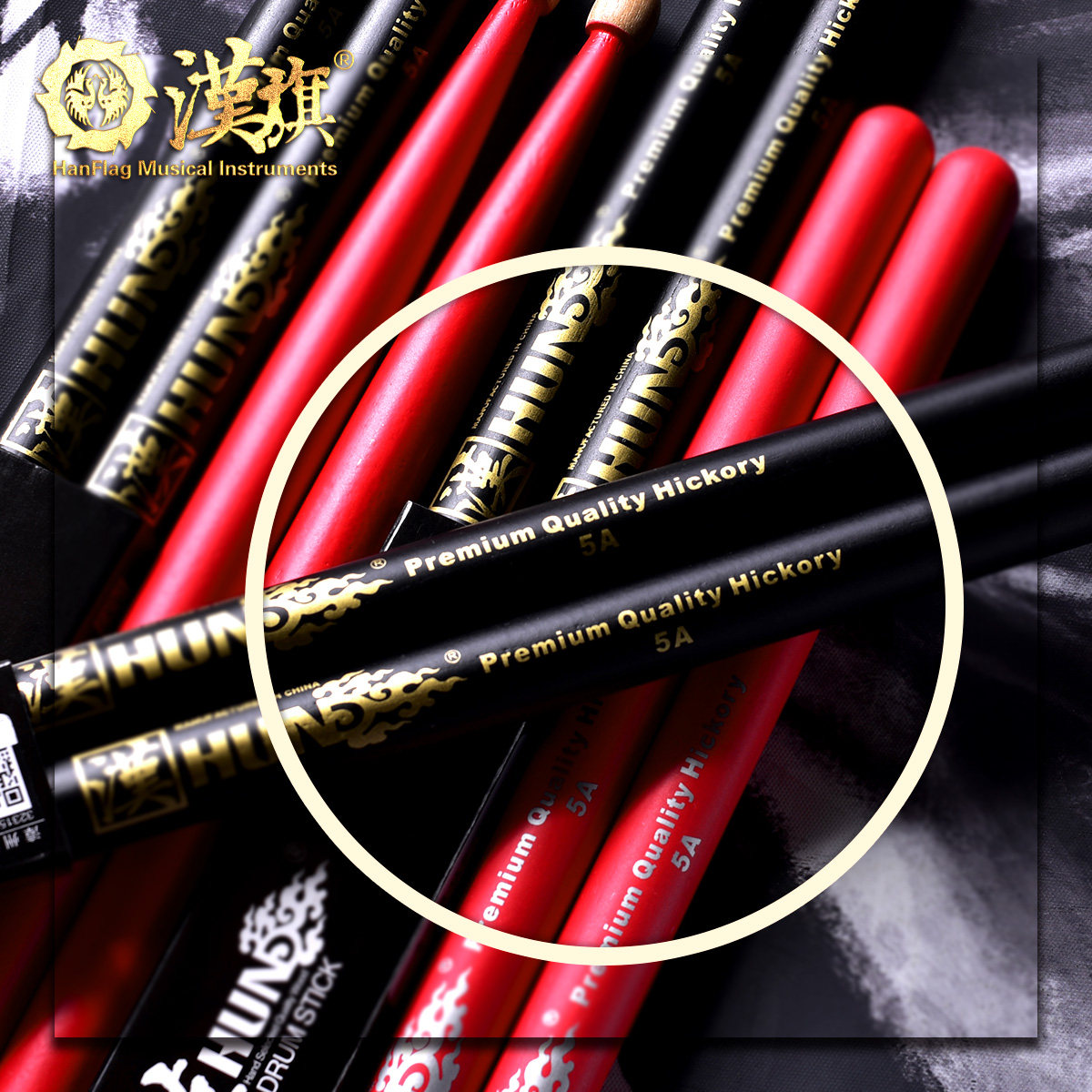 Hanqi Drum Stick Rack Subdrum Drummer Hammer 5A Handmade Hupeach Wood Color HUN Black Gold Red Silver Series