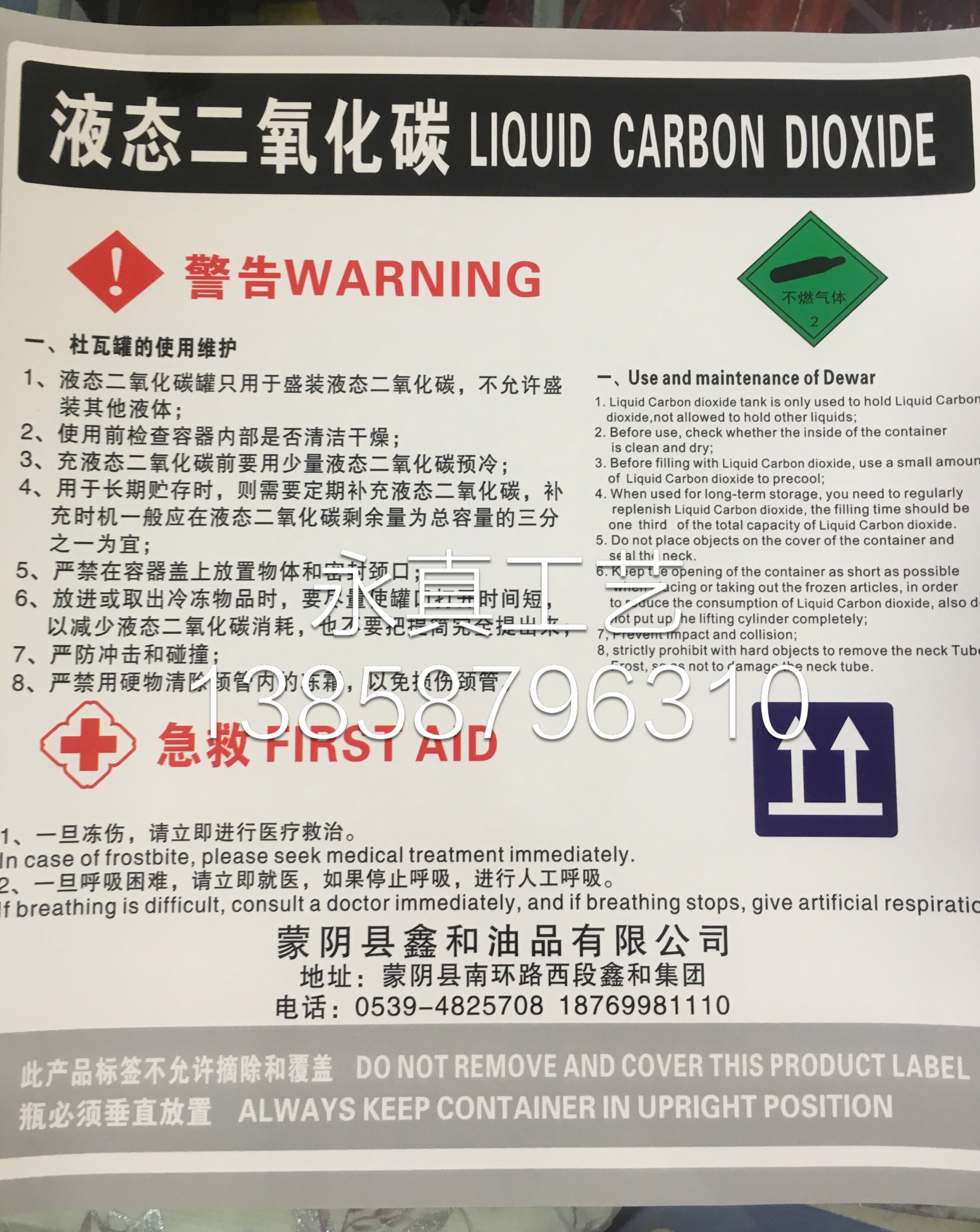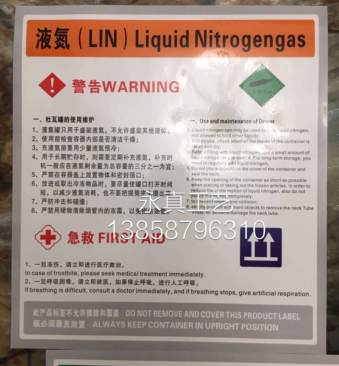 Supply Dewar gas cylinder warning label liquid oxygen liquid nitrogen liquid argon liquid carbon dioxide adhesive