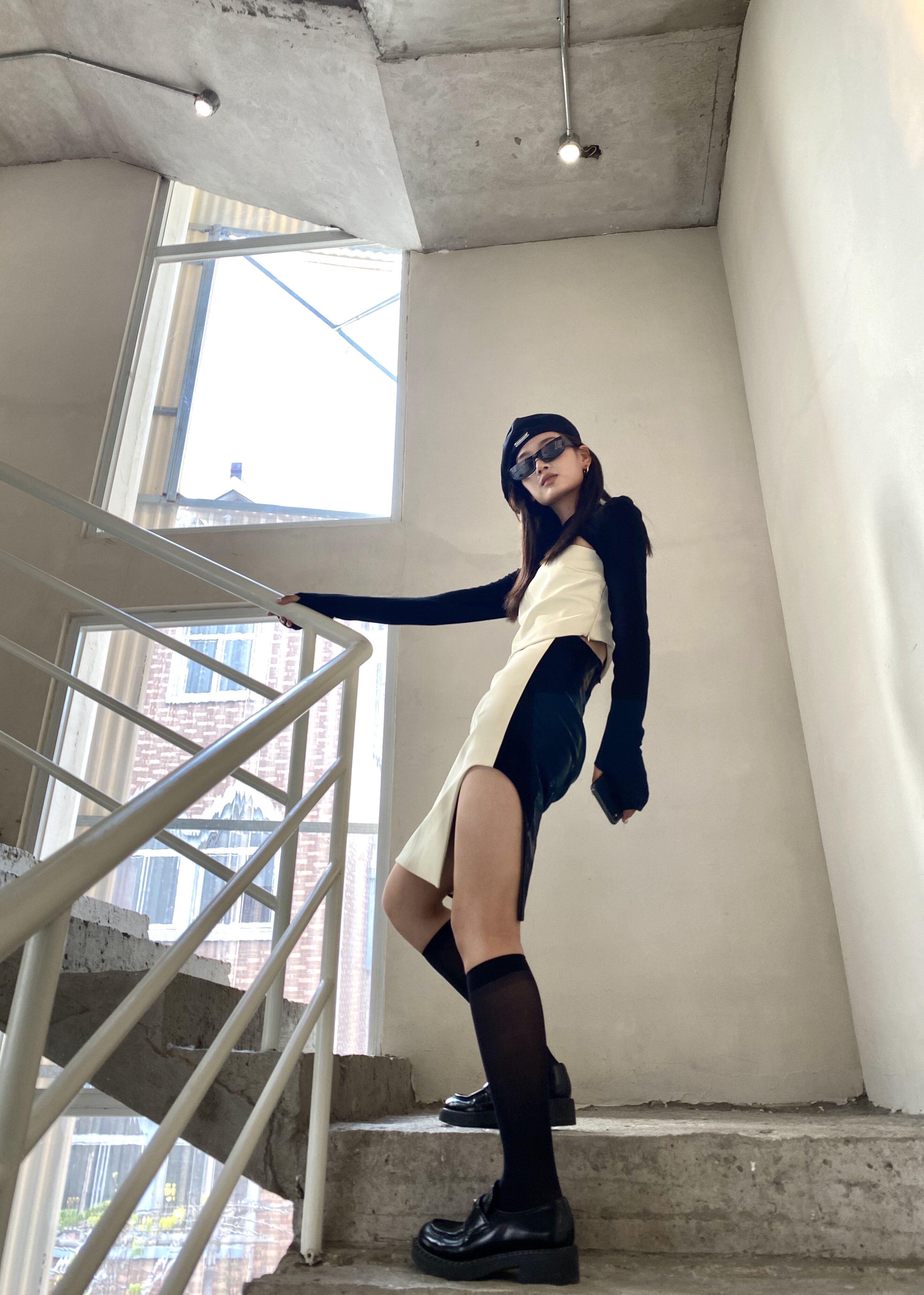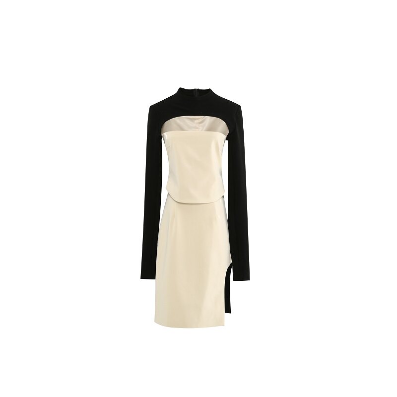 Black and white stitching top Black and white stitching irregular skirt delivery within 15 days