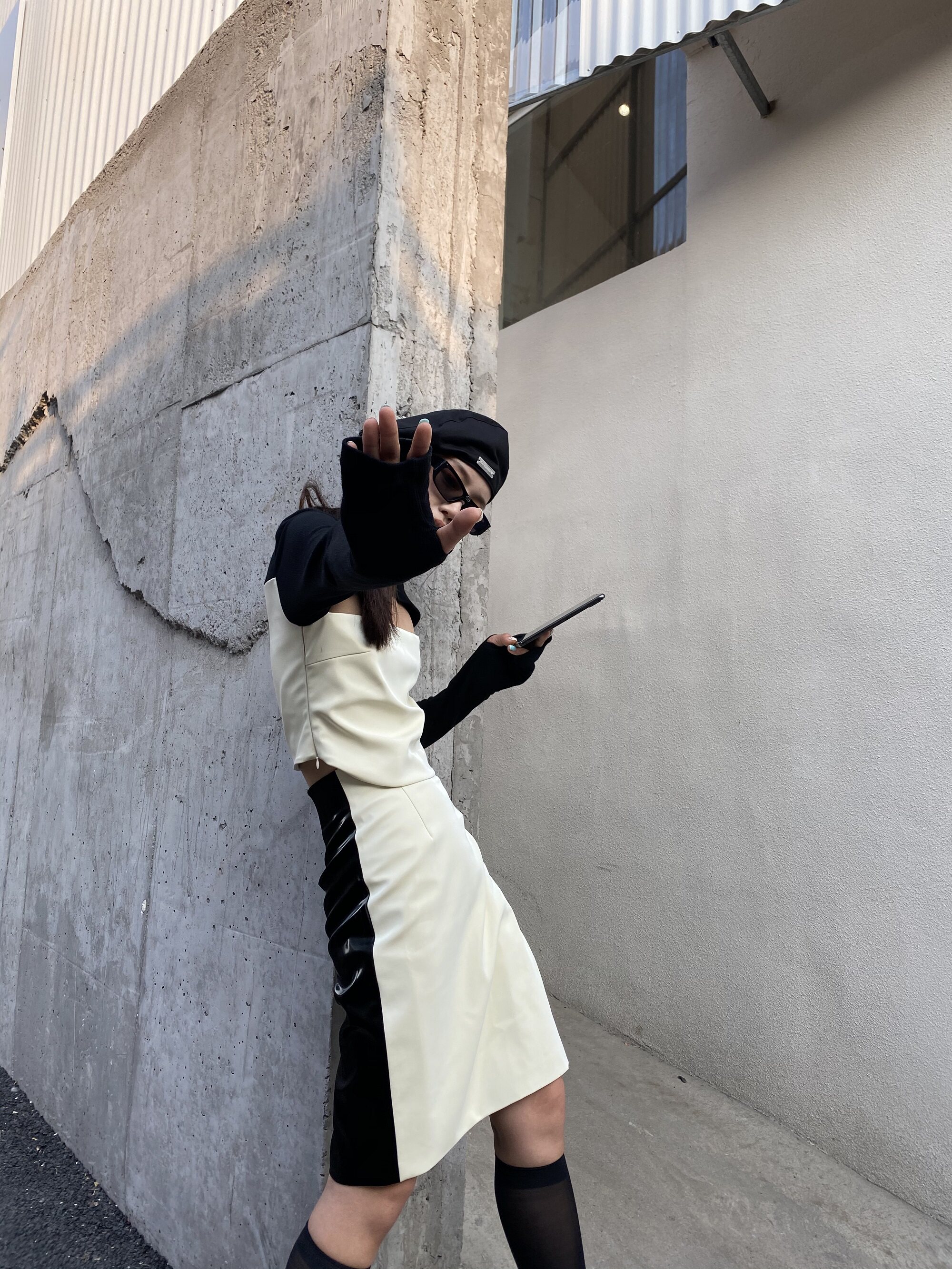 (La lune Du Ciel) LLDC blockbuster niche special stitching leather fashion two-piece suit for women