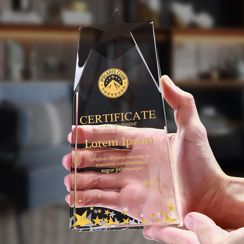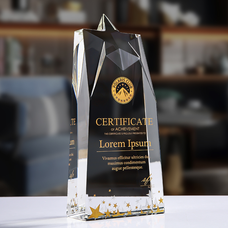 Pentagram Crystal Trophy Custom Upscale Creative Medal Mandating License Plate for Excellent Employee Prizes Lettering