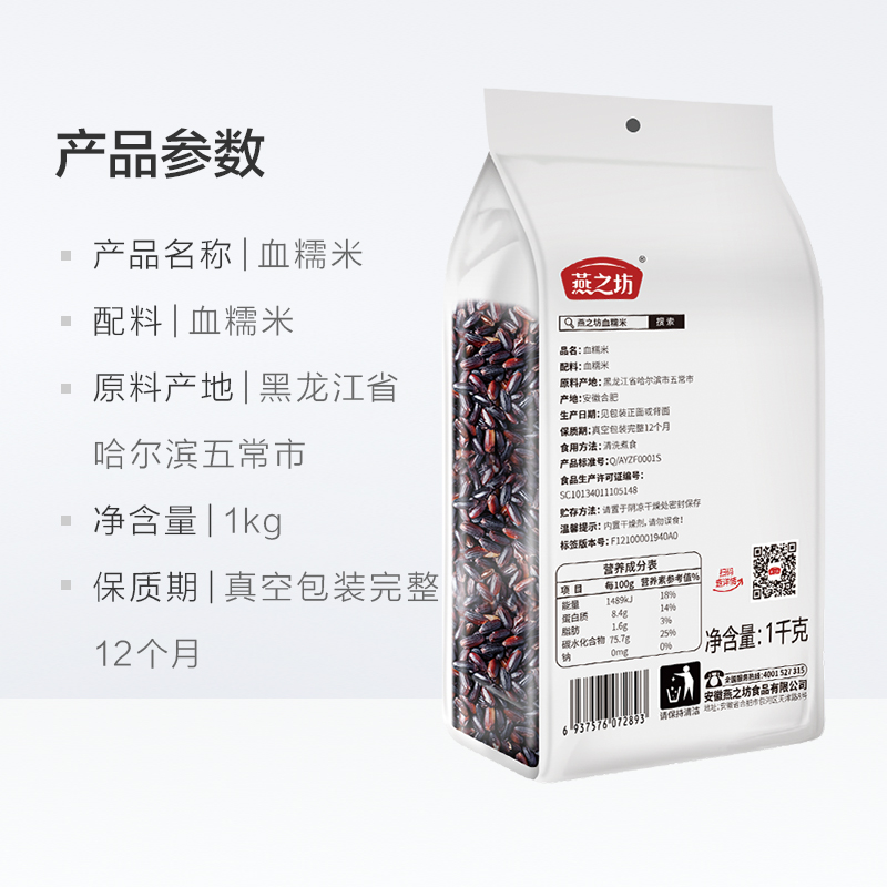 Yanzhifang five grains blood glutinous rice 1kg Northeast coarse grain rice purple rice black glutinous rice black rice purple glutinous rice new rice