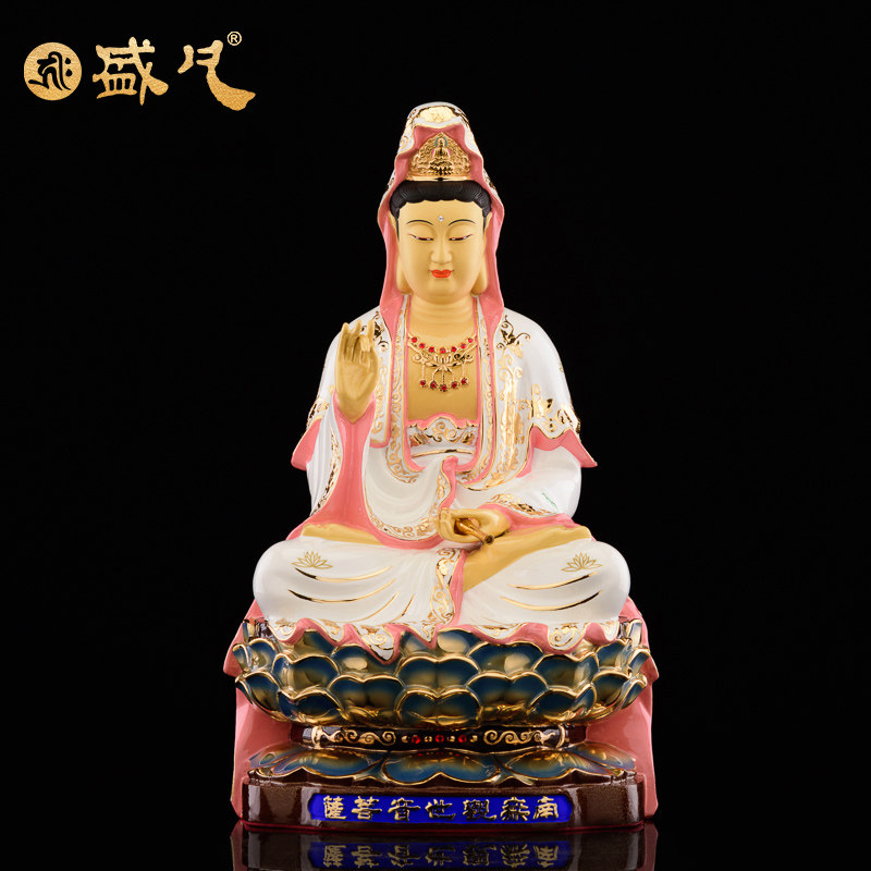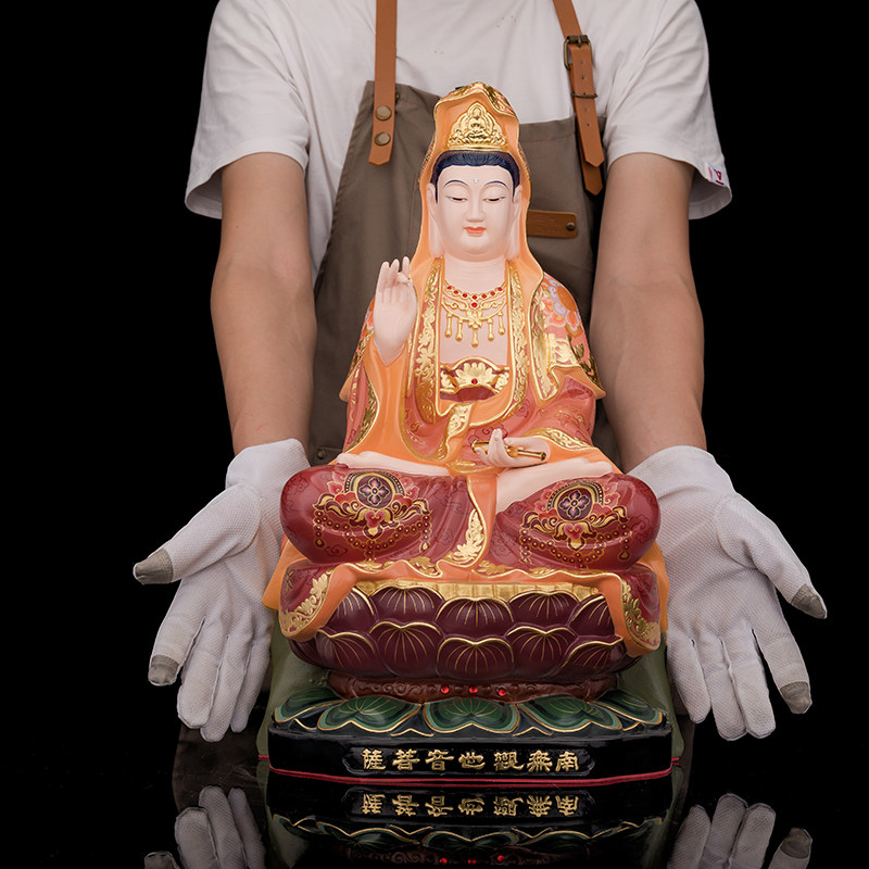 Taiwan Sheng Fan Guanyin Buddha statue home brass gilt painted Guanyin Bodhisattva ornament home Buddhist hall handicrafts