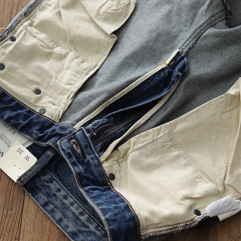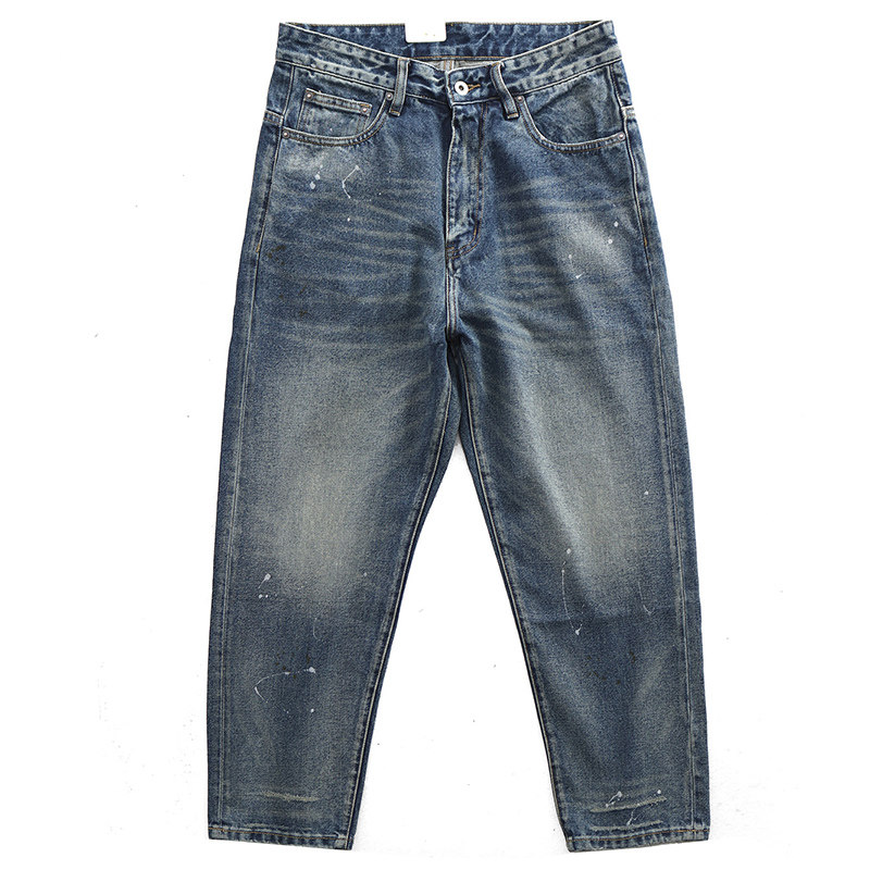 Japanese retro casual daddy pants wide-leg pants men's trendy washed, old-fashioned ink-splashing straight-leg loose jeans men
