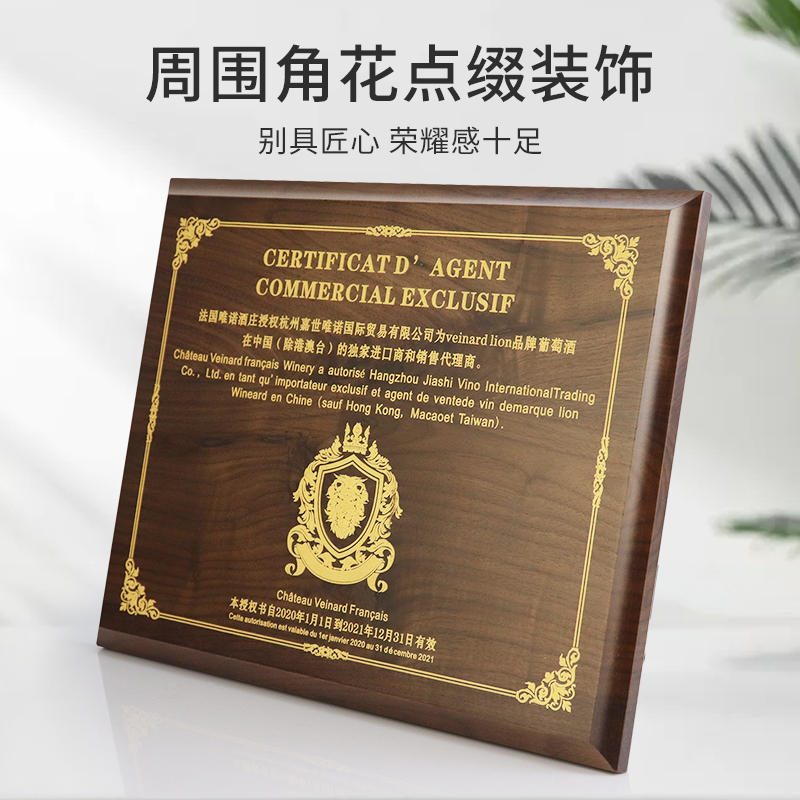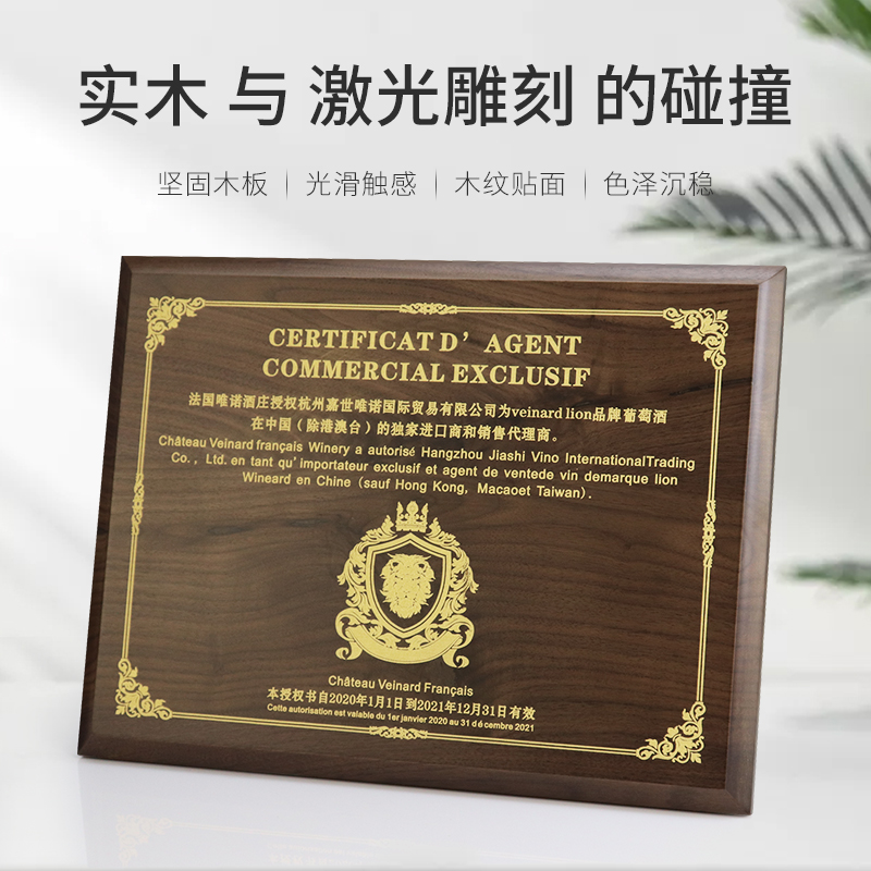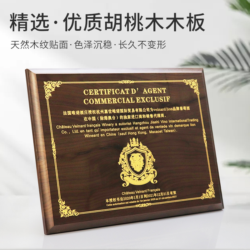 (Brand Authorization Agent) Black Walnuts Solid Wood Medal Custom Set Up With Honor Plaque Franchise Dealer Card