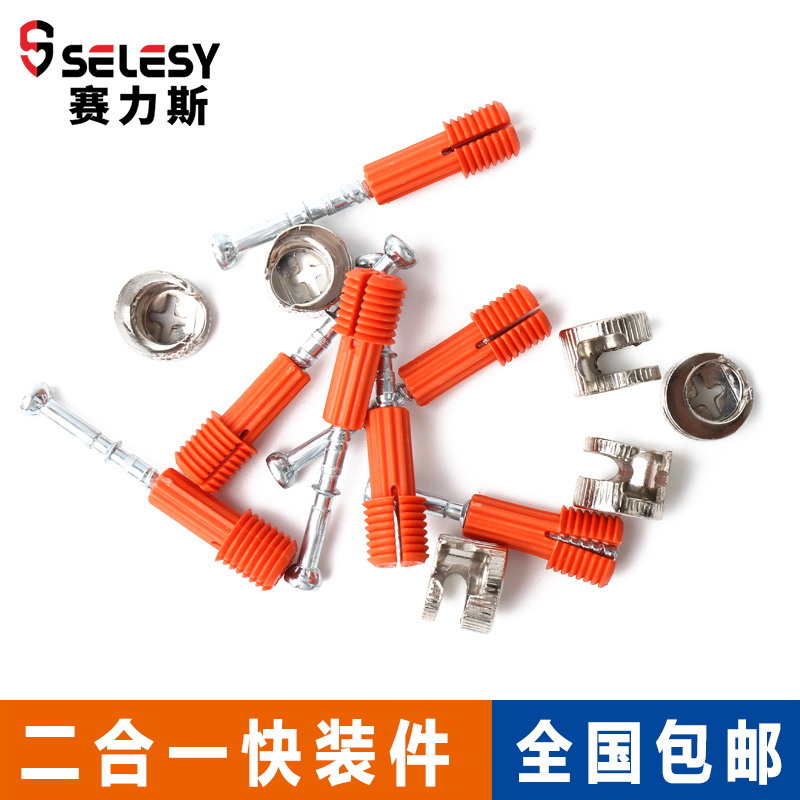 Furniture two-in-one quick fit connector eccentric wheel screw nut bed wardrobe integral cabinet three-in-one assembly fastener