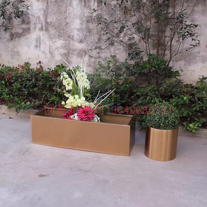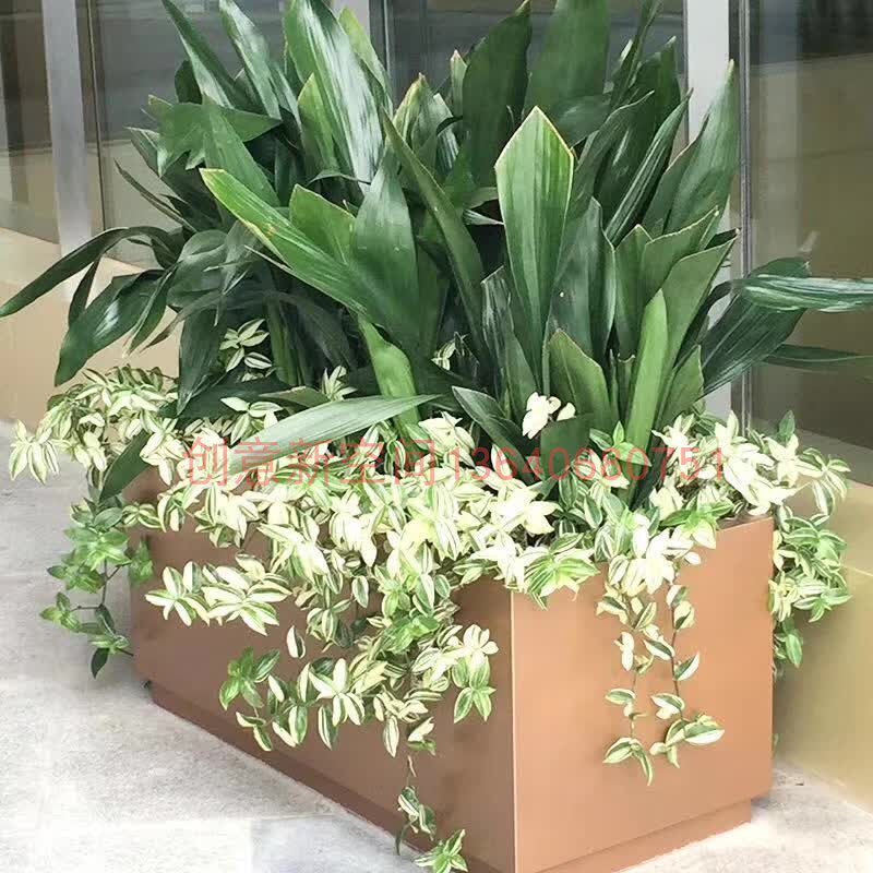 Outdoor Composition Flower Case Iron Art Mobile Flower Racks Stainless Steel Flower Groove Rectangular Flower Beds Outdoor Finished Flower Pots Custom