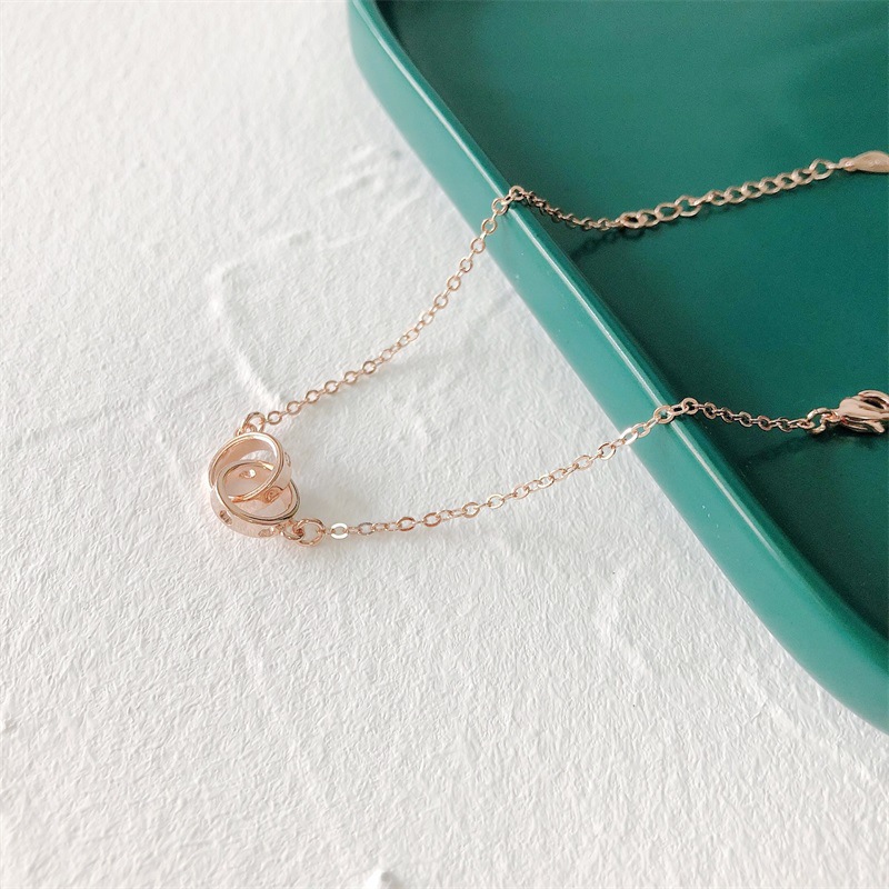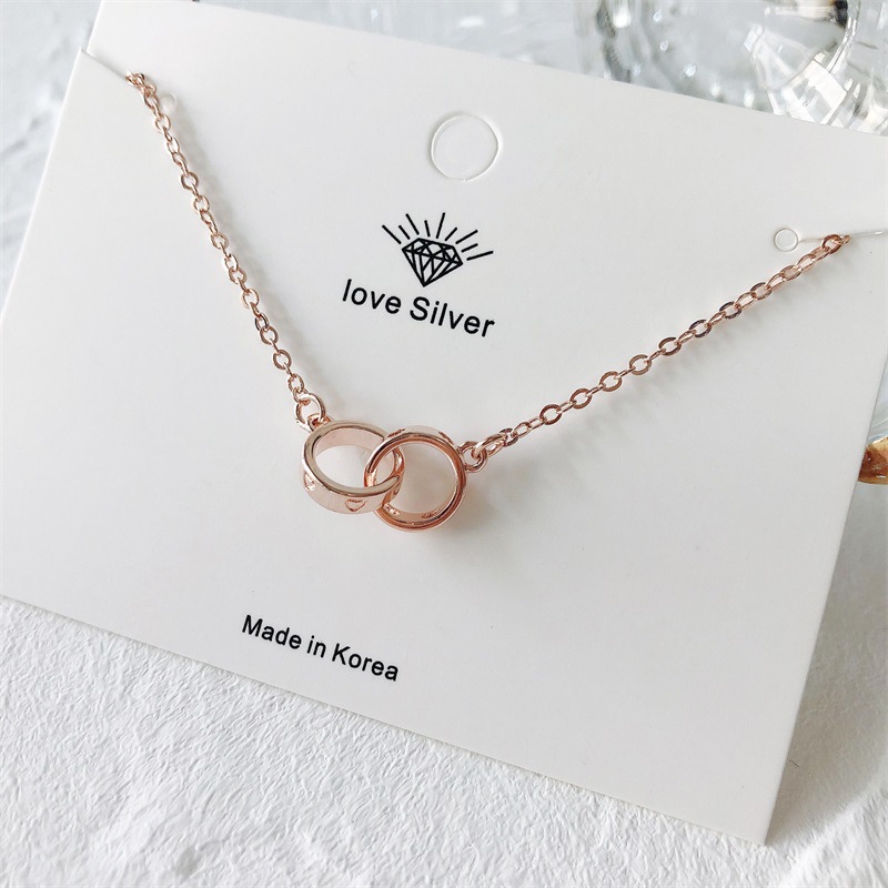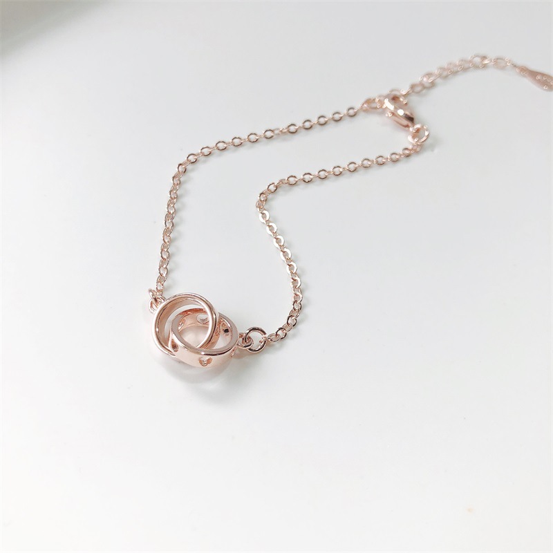 Double ring hollow love silver bracelet female Japanese fresh rose gold in windy sweet European and American hands