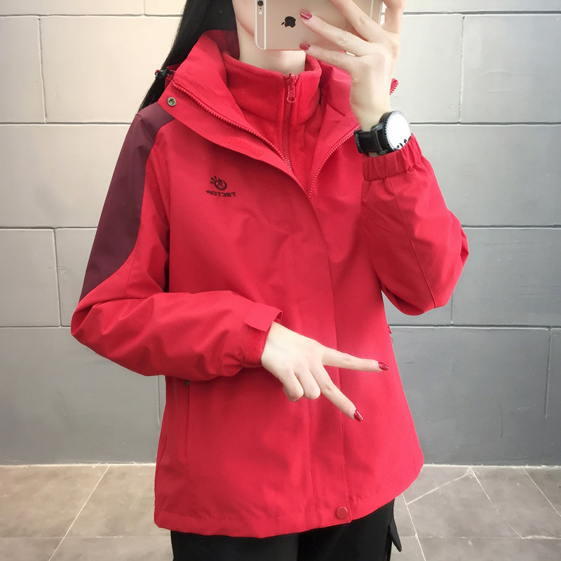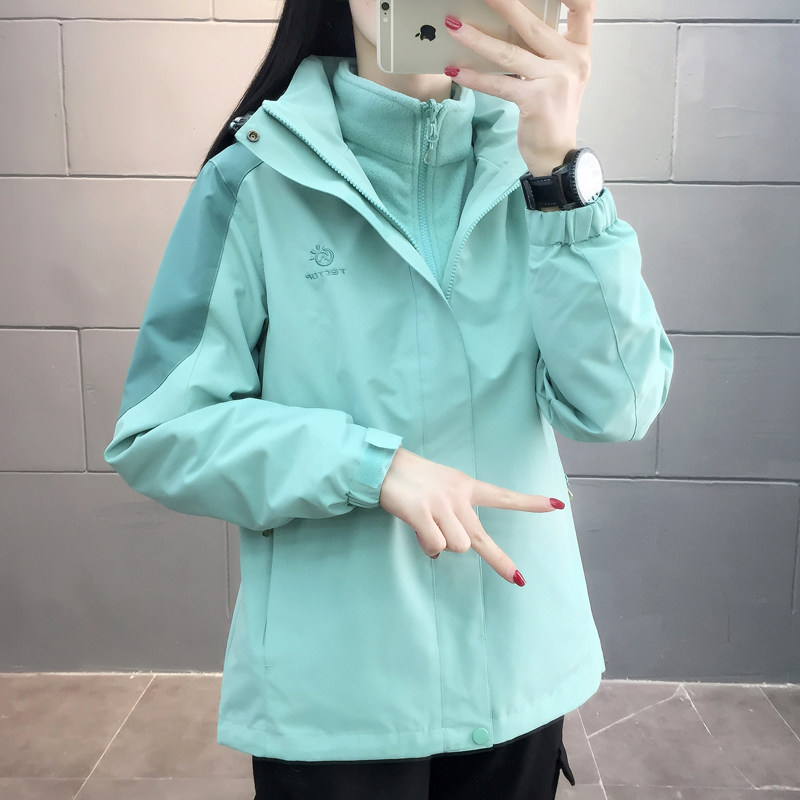 New outdoor jacket women's fleece thickened two-piece set three-in-one detachable Korean warm jacket mountaineering suit