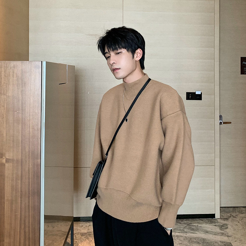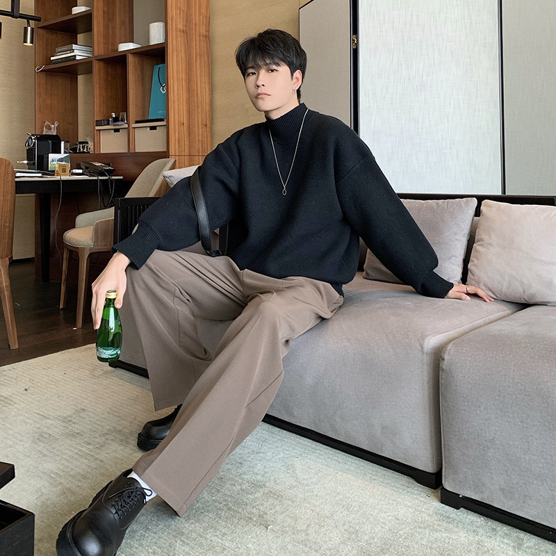 Hualun autumn and winter couple black half turtleneck sweater men's Korean version loose thick inner bottoming sweater sweater