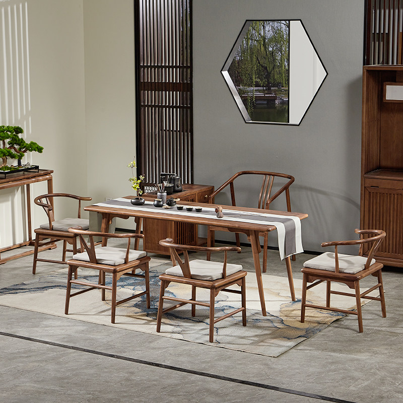 New Chinese style tea table and chair combination black walnut wood kung fu tea table Ming and Qing antique tea art table Zen Zen tea ceremony table