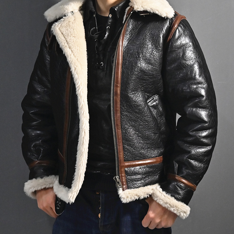 New products Small crowdday ensemble retro men's clothing reignemento and headlining Horse leather laminated wool fur composite integral B3 jacket
